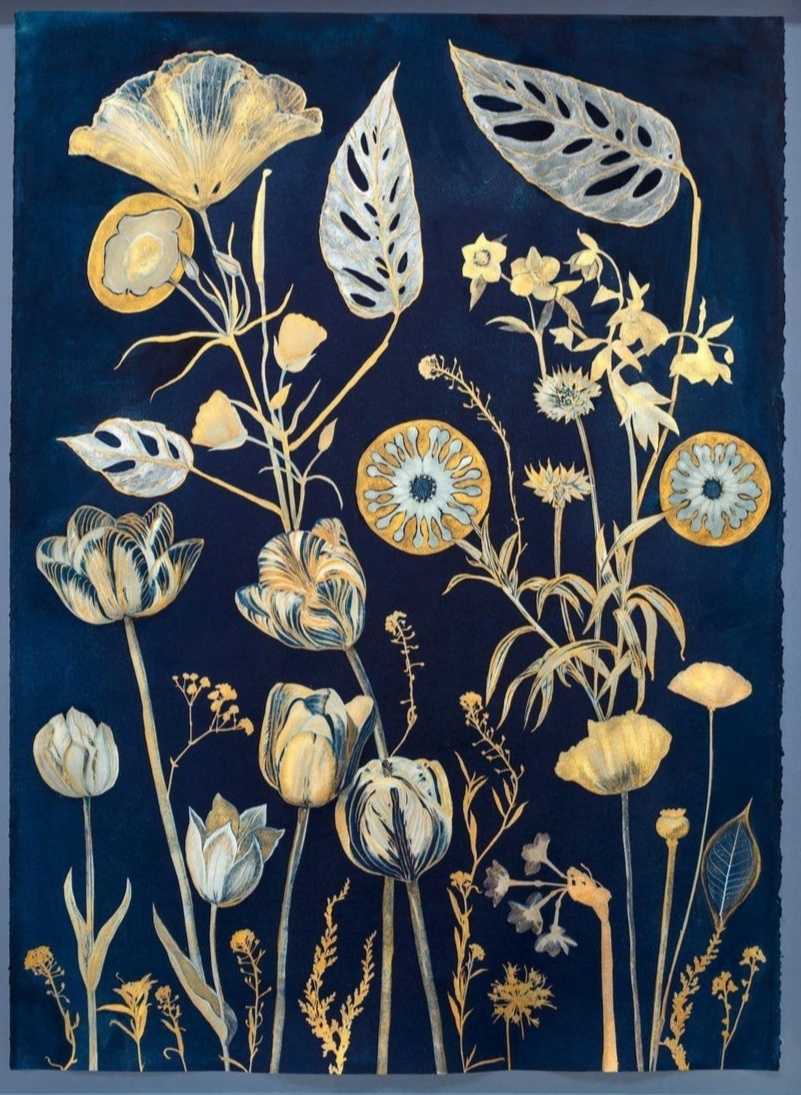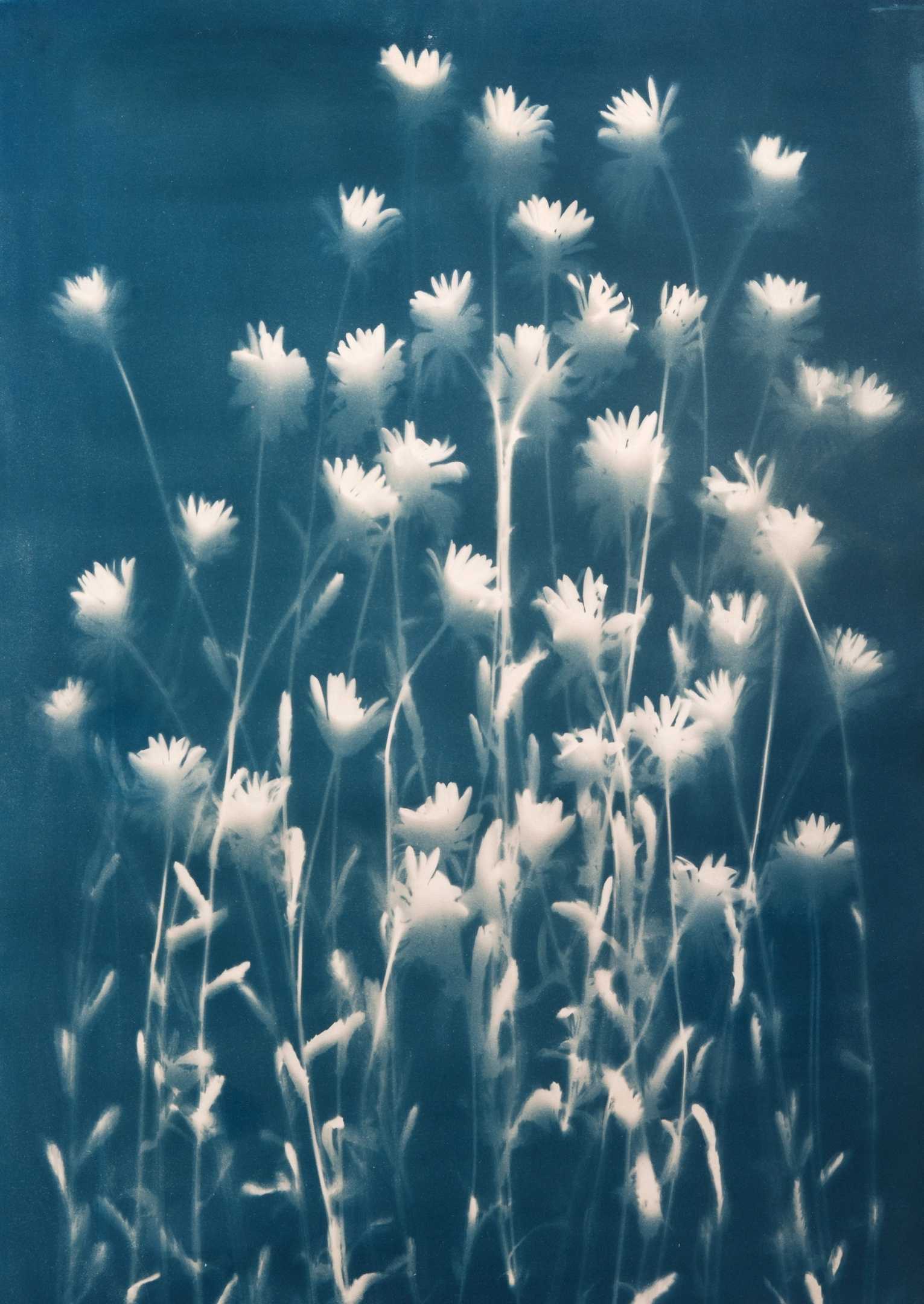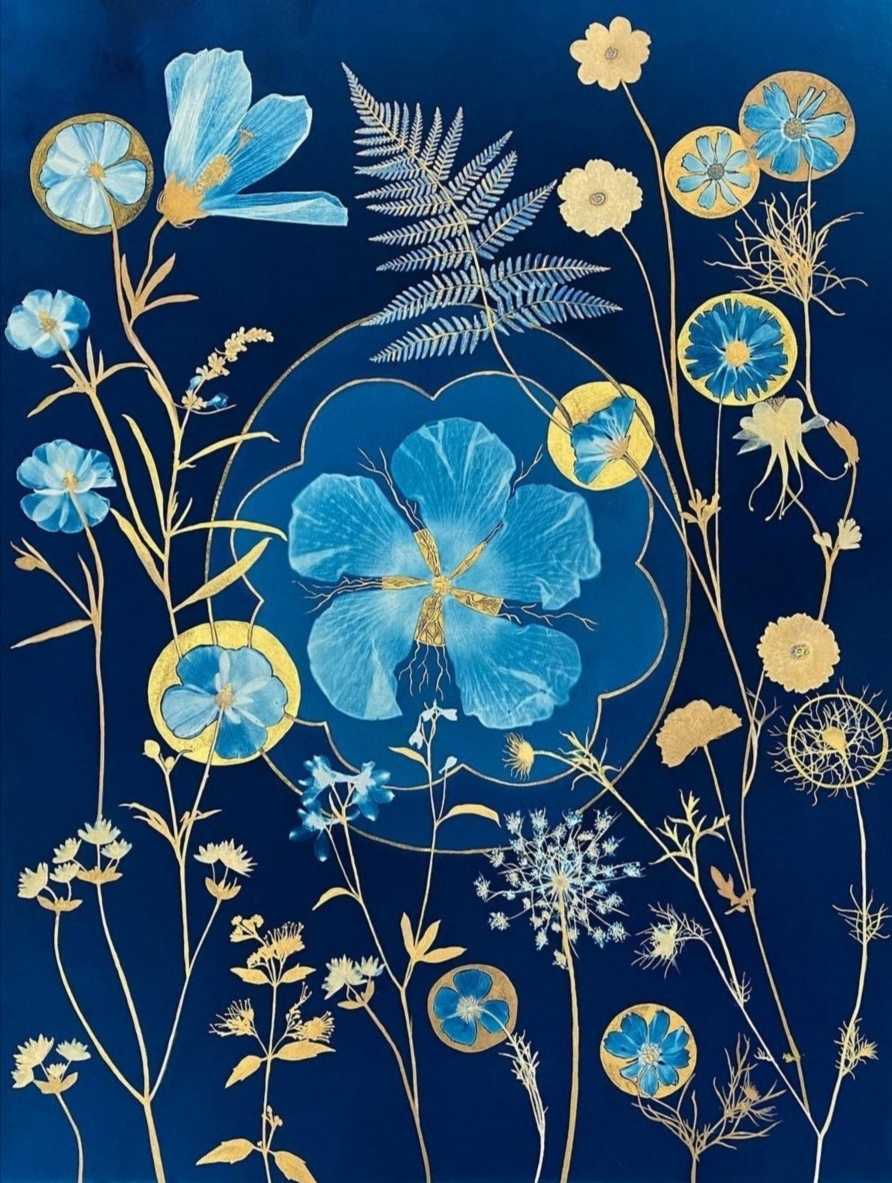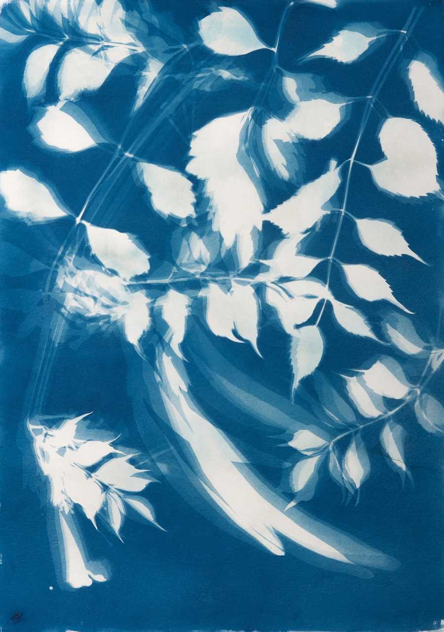 Отдельно существует цианограмма — на лист, покрытый эмульсией, выкладываются любые растения. С полученным изображением ты уже работаешь, как тебе заблагорассудится. Можно доработать изображение с помощью акварельных красок.