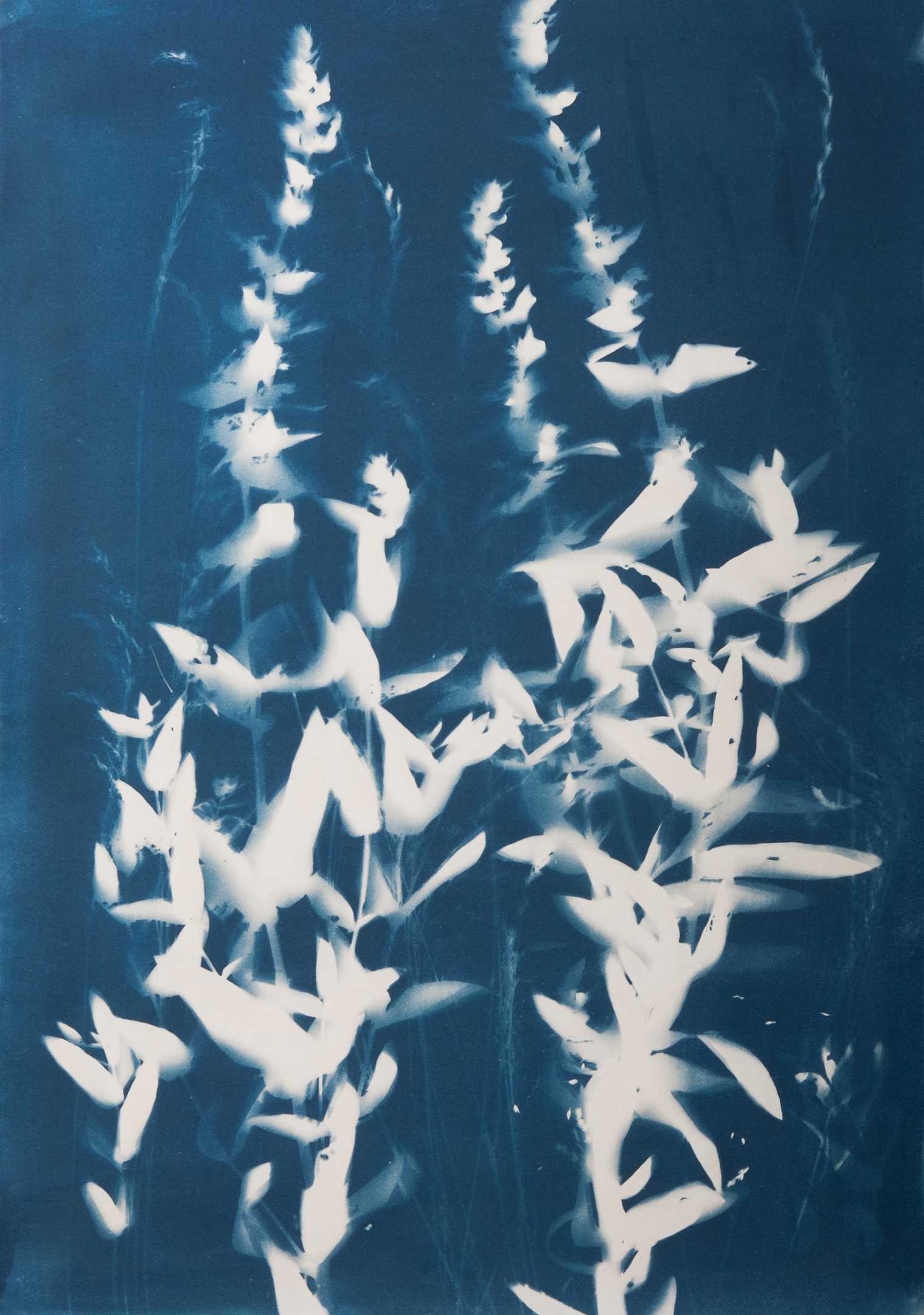 Цианотипию как процесс открывали раза четыре. Первый раз это было в Индии 4000 лет назад, где изобрели способ красить все в цвет индиго с помощью растений, которые содержали в себе много железа и калия. При взаимодействии с водой и солнцем давался такой насыщенный синий цвет, который мы сейчас видим в цианотипах. В этом процессе для печати берутся две соли: железо и калий. Они сами по себе не светочувствительные, но когда ты их вместе с собой смешиваешь с дистиллированной водой, и выносишь под ультрафиолет, то получается волшебство. Можно переносить любые контактные отпечатки: как с пленки, так и с цифры.