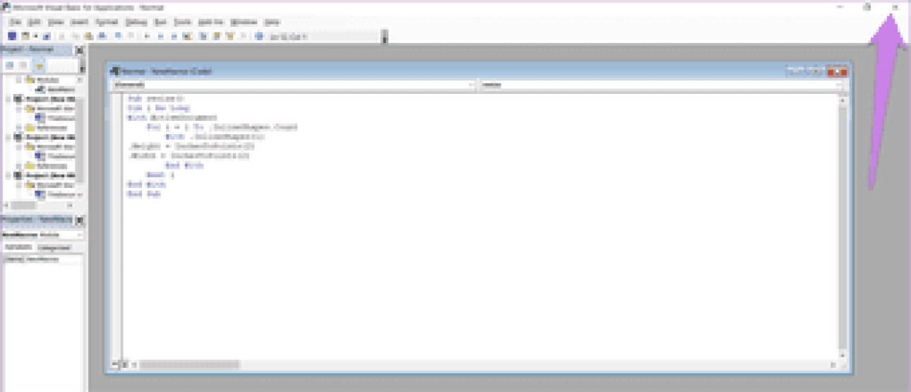 Шаг 7: После копирования закройте окно Microsoft Visual Basic для приложений, щелкнув значок крестика.
