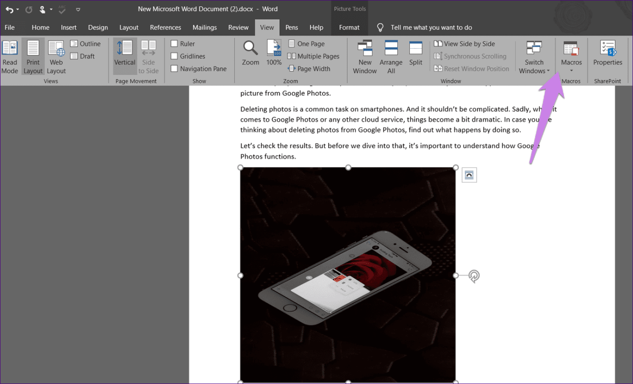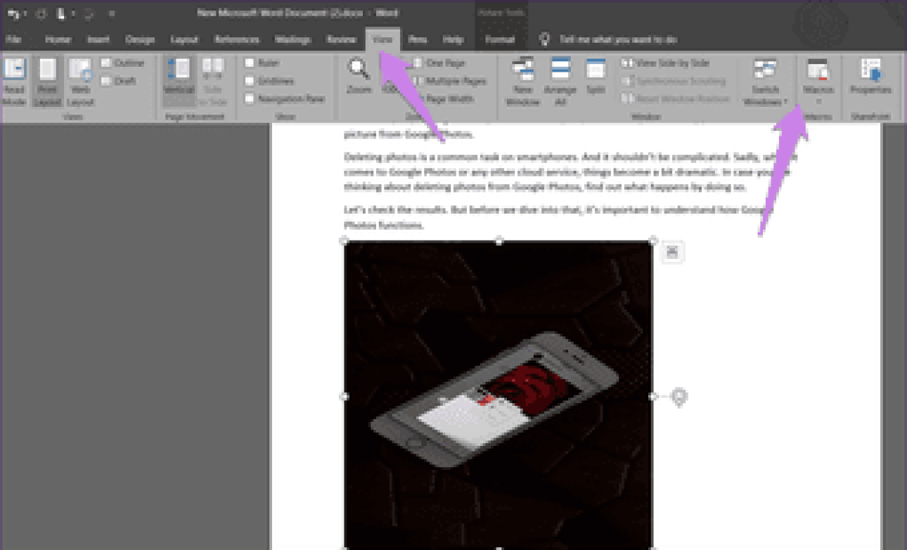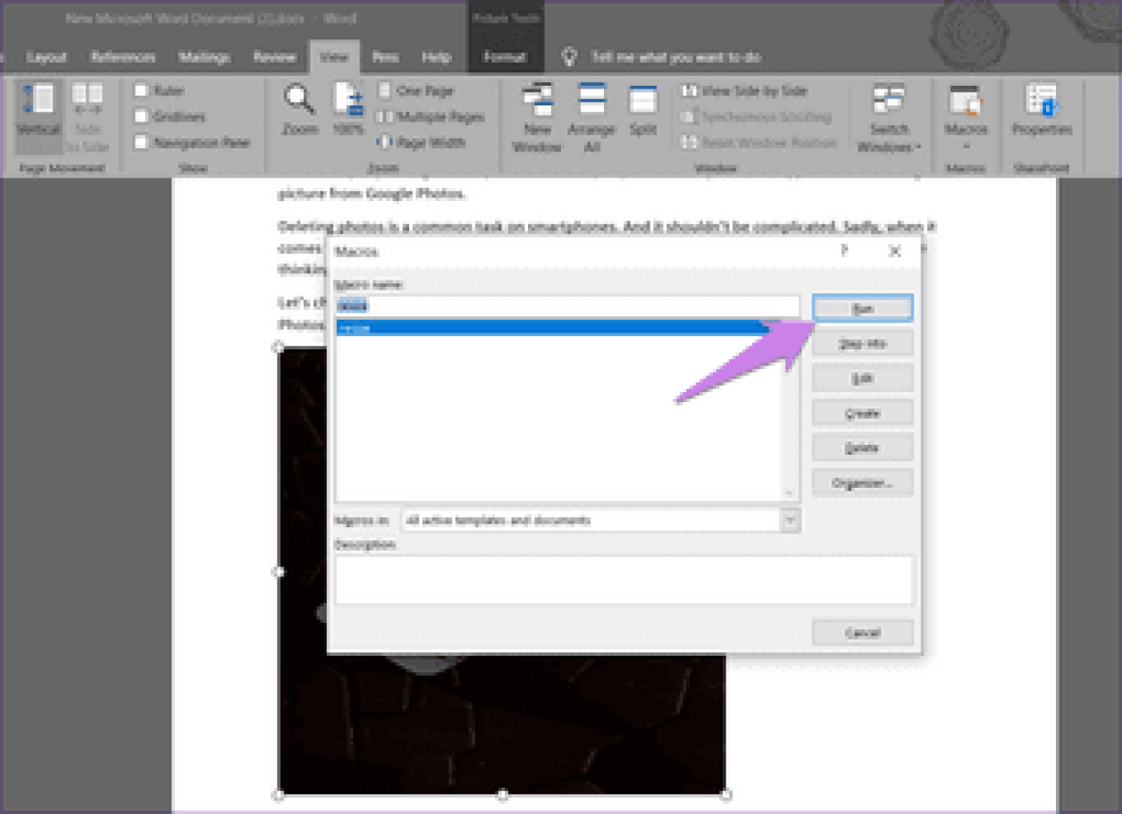 Шаг 8: Выбрав изображение, снова нажмите «Макросы» на вкладке «Вид».
