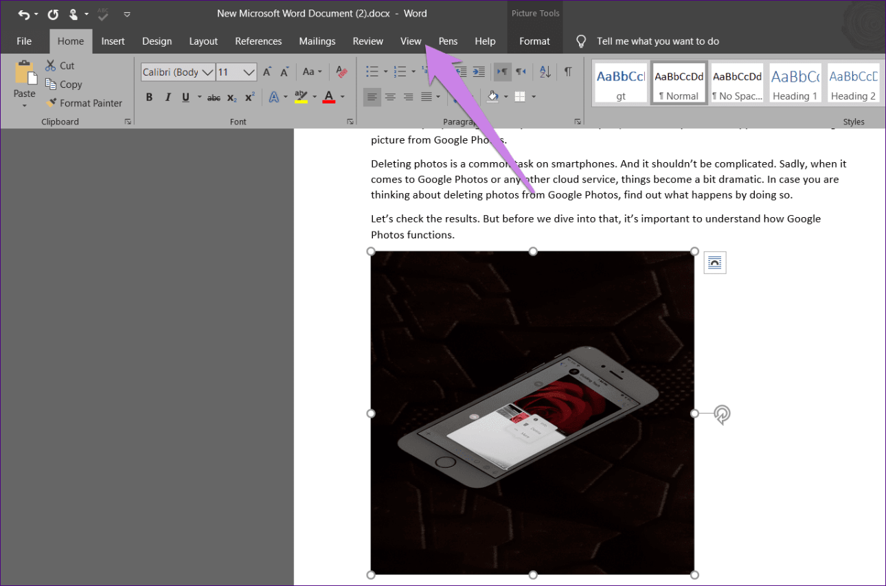 Шаг 2: Нажмите на первую фотографию в файле, чтобы выбрать ее. Затем нажмите на вкладку «Вид» вверху.