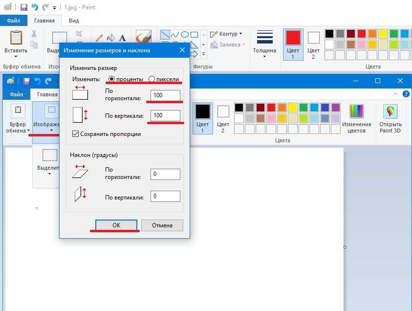 Изменение итогового изображения подбирается с помощью перемещения ползунка по шкале. В полях «Ширина», «Высота» и «Проценты» отображается текущее состояние.