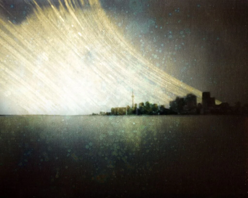 Майкл Крисман сделал снимок Торонто на пинхол-камеру, которая представляет из себя просто черную коробку. А вместо пленки он использовал обычную фотобумагу, чувствительность которой намного ниже чем фотопленки, но она же и позволяет использовать очень длинные выдержки. Хотя фото и выглядят как ночные, на самом деле яркие линии на небе — это пути следования солнца, поэтому подобный стиль фото называют еще «solargraphy».