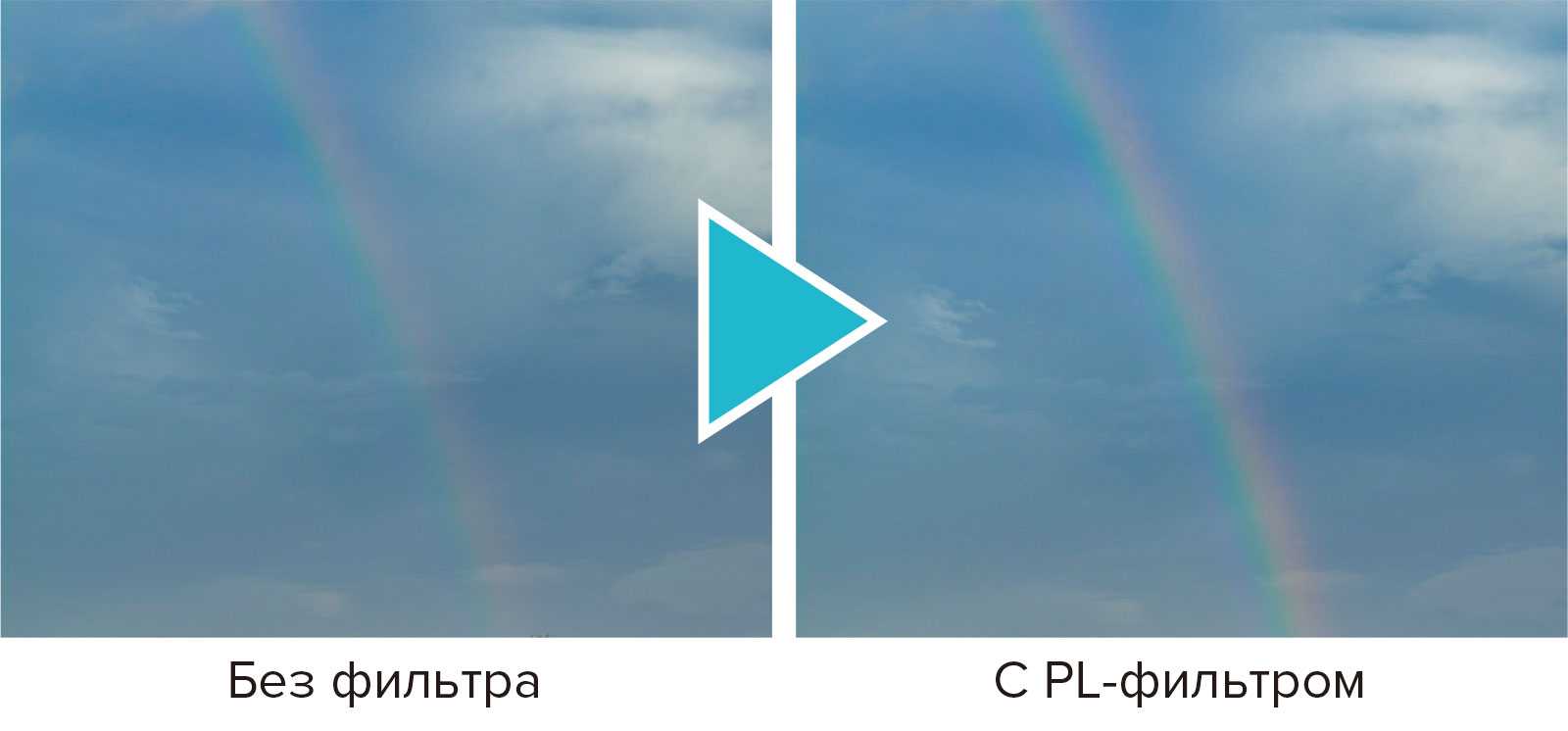 С помощью PL-фильтра фотограф может сделать цвета радуги более выраженными. Аналогичным образом он работает с радужными облаками и льдом.