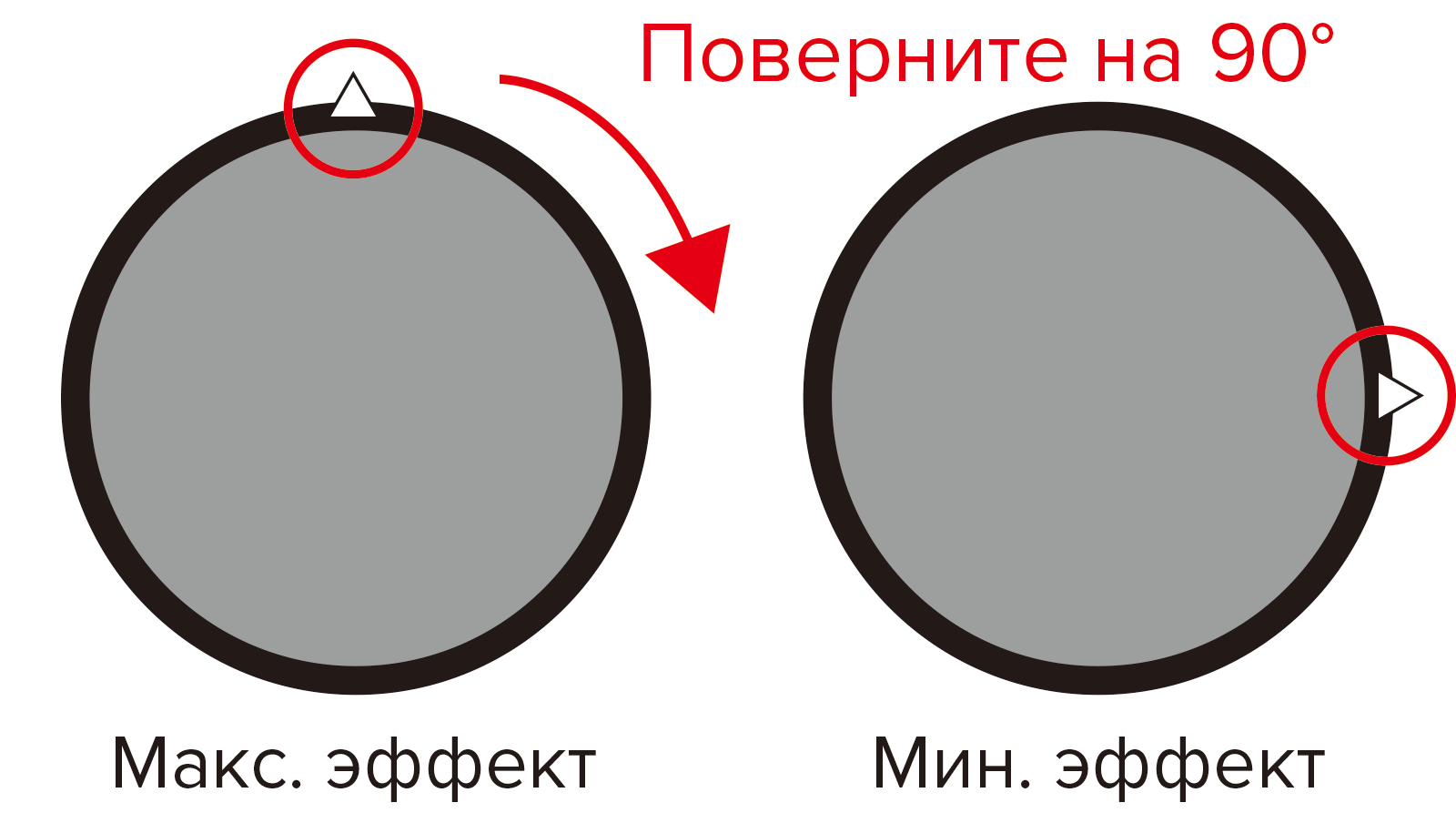 * Эффект не всегда максимальный, когда метка ▲ находится сверху.