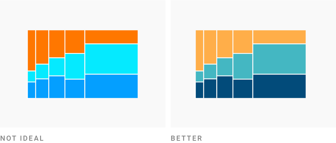 Я настоятельно рекомендую первый вариант (однако, вы все равно можете обвести его белой рамкой, если вам нравится стиль): цвета будут выглядеть более динамичными, и люди с дальтонизмом смогут понять диаграмму ничуть не хуже остальных. На самом деле, все будут вам благодарны, независимо от способности видеть цвета!