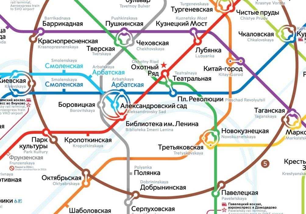 Использование градиентов в оформлении переходов на схеме Московского метрополитена. Изображение: Студия Артемия Лебедева