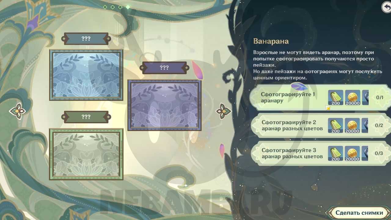 Нажимаем «Сделать снимки» и отправляемся в указанную карте область искать аранар.