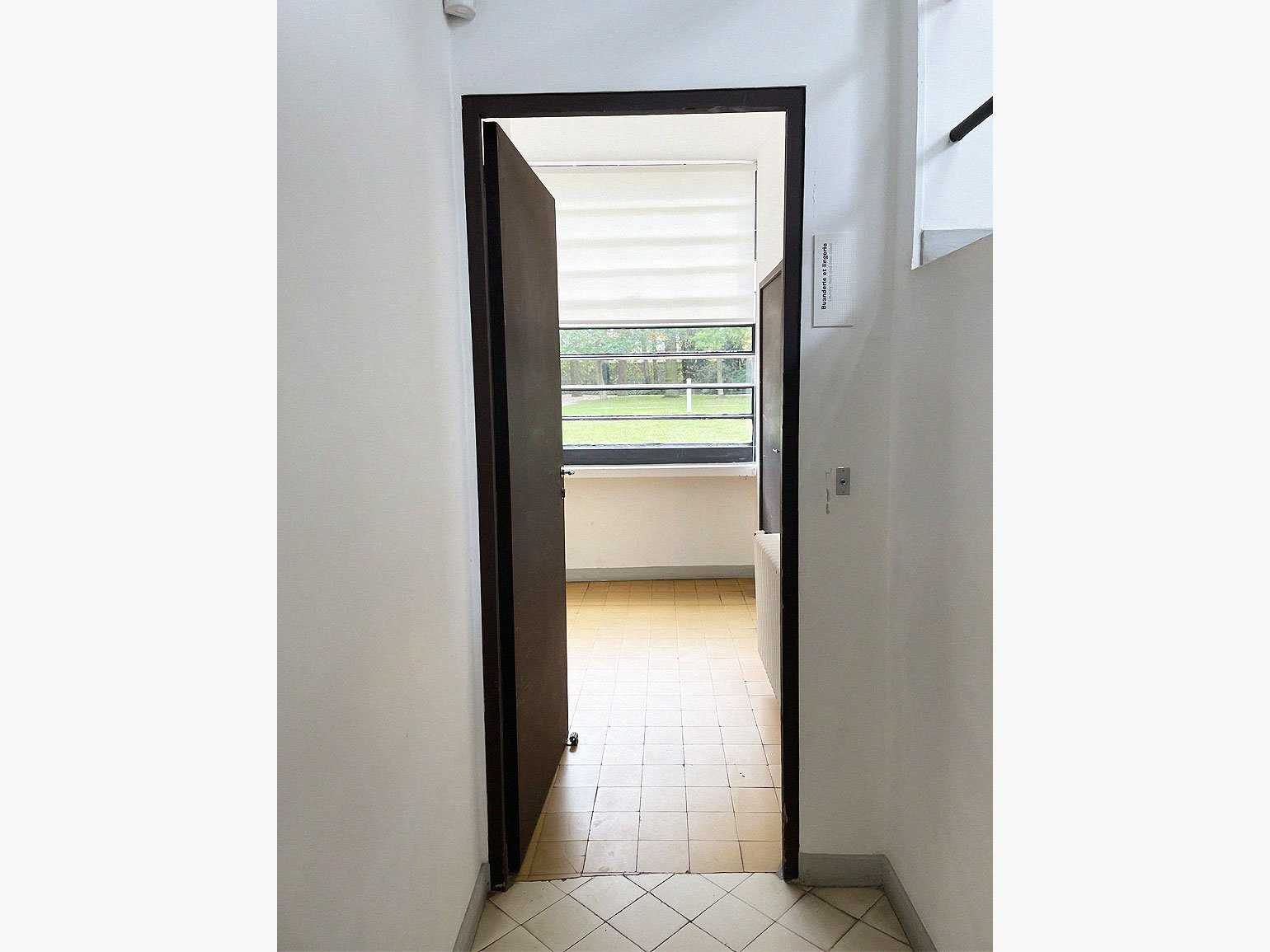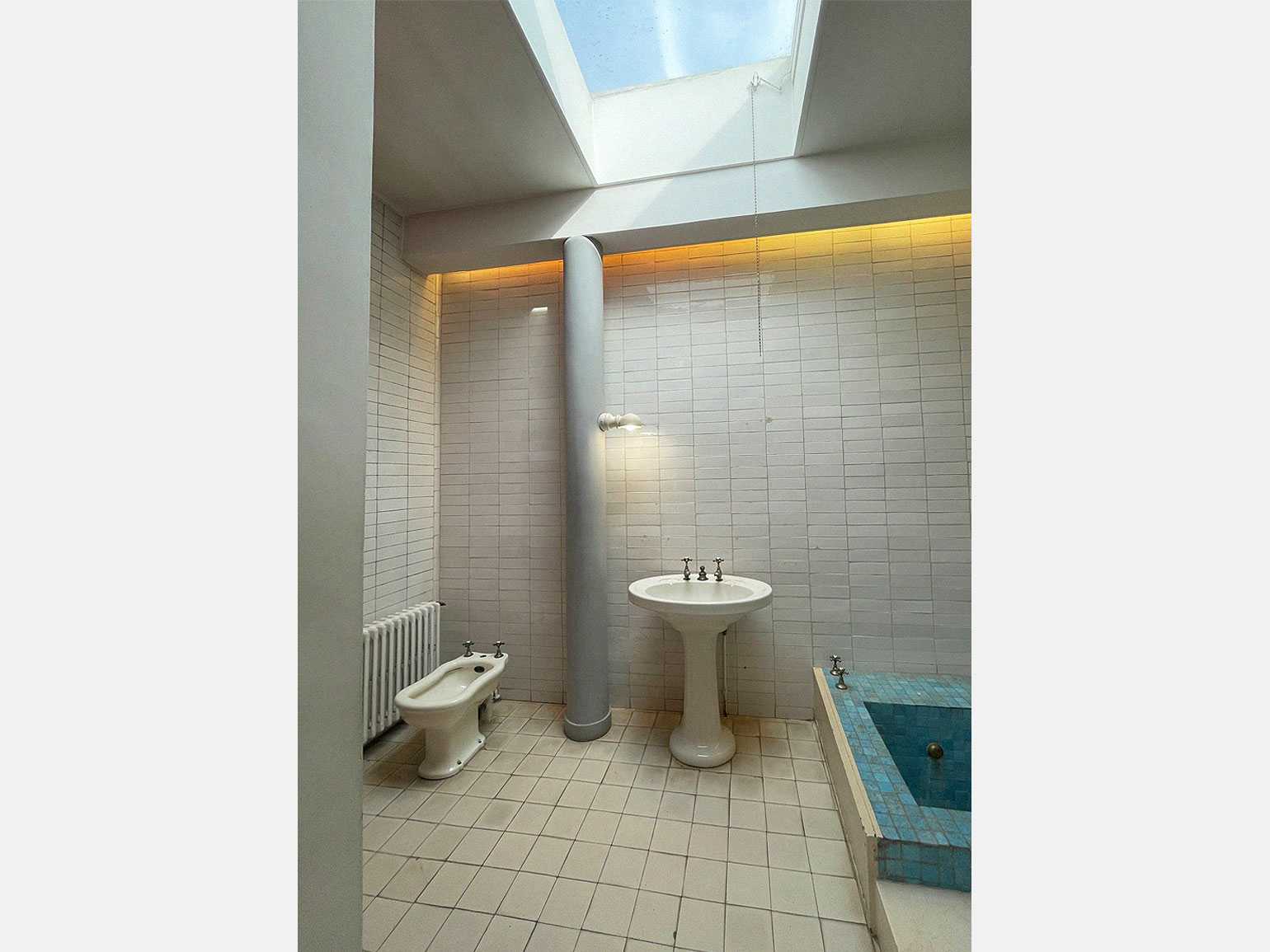 Он разработал пространство кухни, чтобы она была функциональной, гигиеничной и современной. Она даже напоминает лабораторию: все рабочие поверхности облицованы белой керамической плиткой, шкафы закрываются с помощью металлических дверей. Широкие окна дают хорошее освещение и позволяют проветривать помещение.