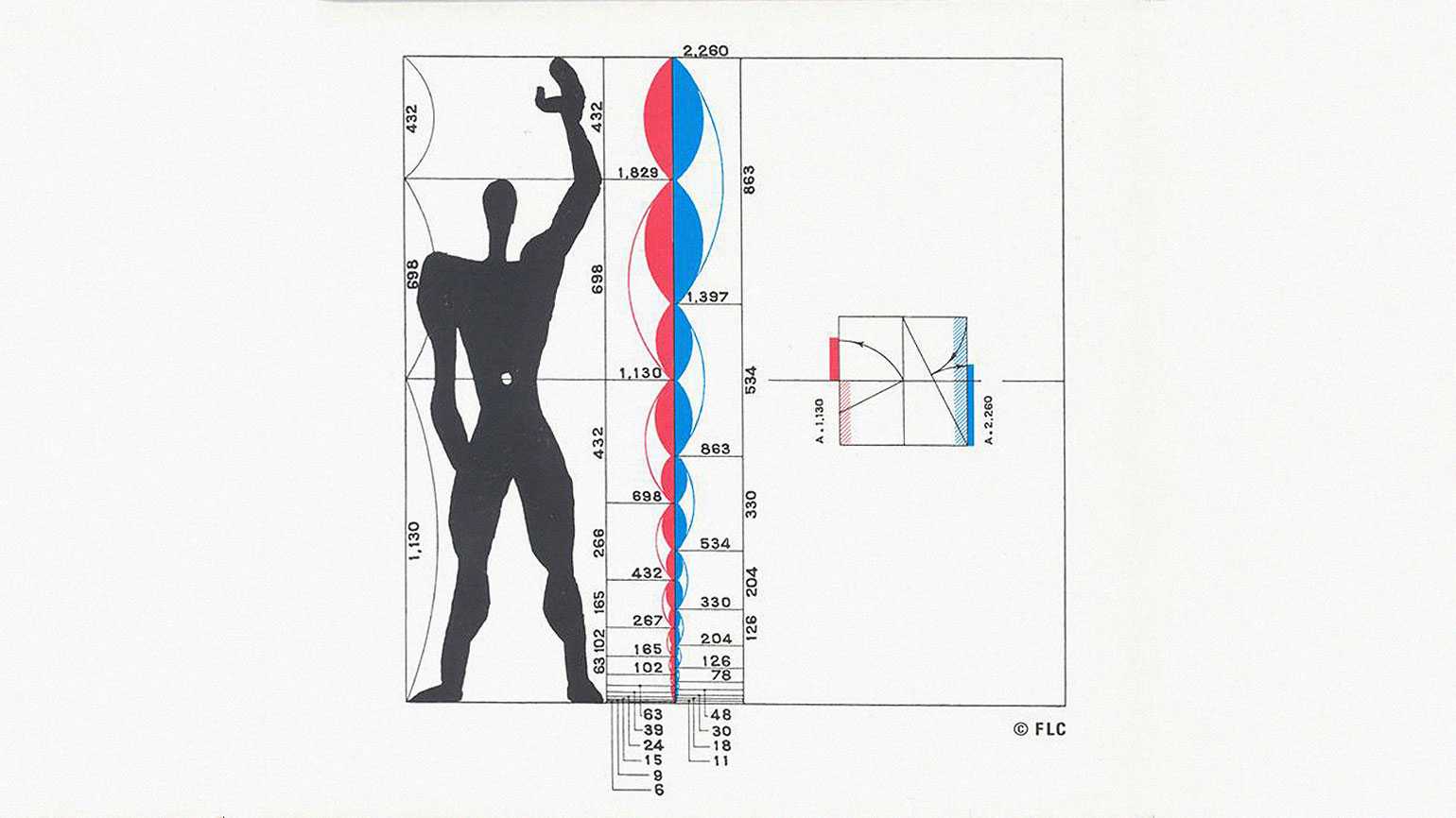 Модулор — разработанная Ле Корбюзье система мер, в её основе человек с поднятой рукой — высота 2,26 метра. Без поднятой руки — 1,83 метра. По Модулору архитектор высчитывал пропорции здания и размеры помещений. Изображение: Le Corbusier — Oeuvre complète: Volume 4: 1938-1946 / издательство «Birkhäuser Basel» / fondationlecorbusier.fr