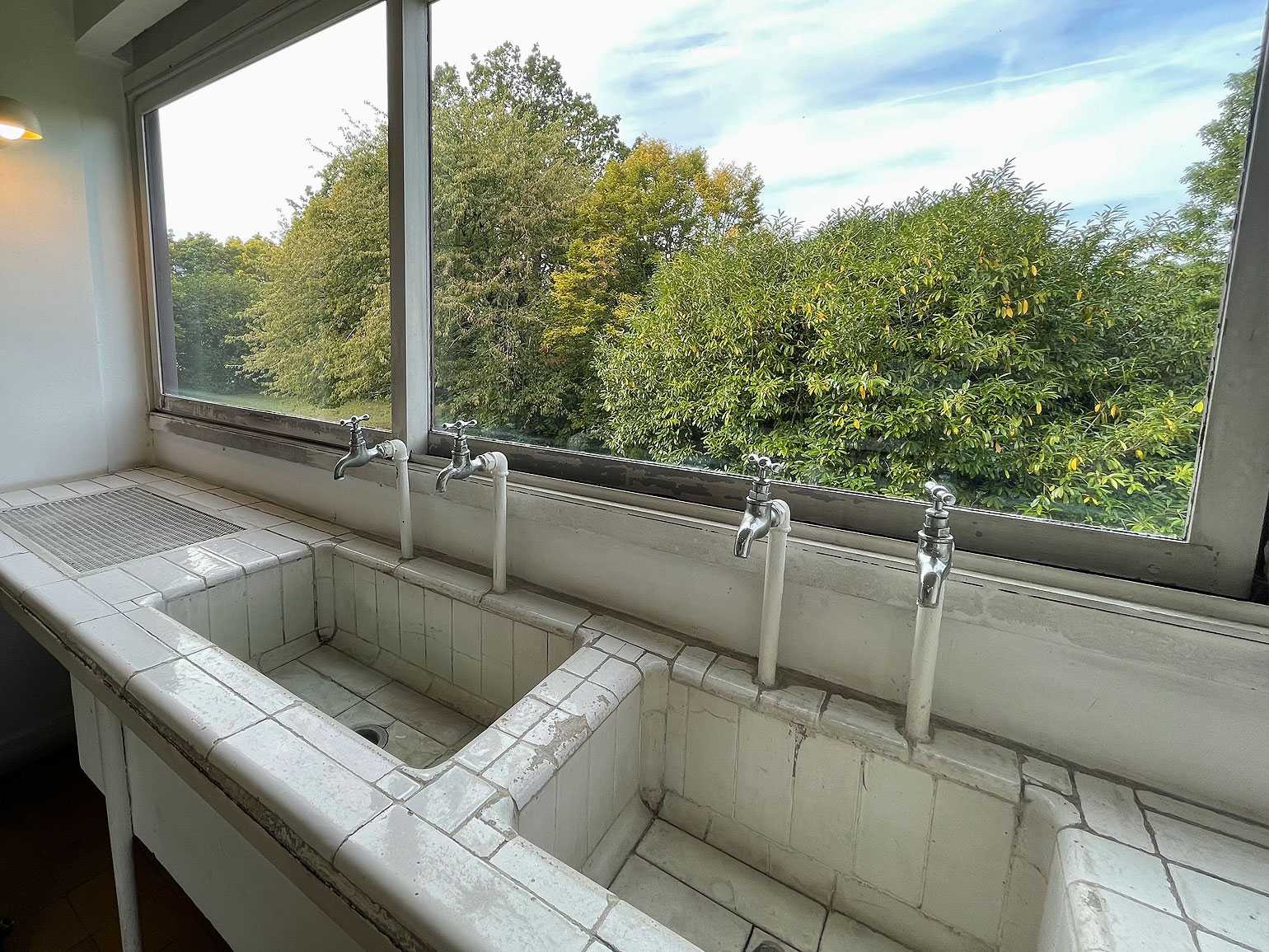 Первый этаж. Прачечная. В ней находятся глубокая раковина и встроенный шкаф. Фото: Прокофьева Дарья / Skillbox Media