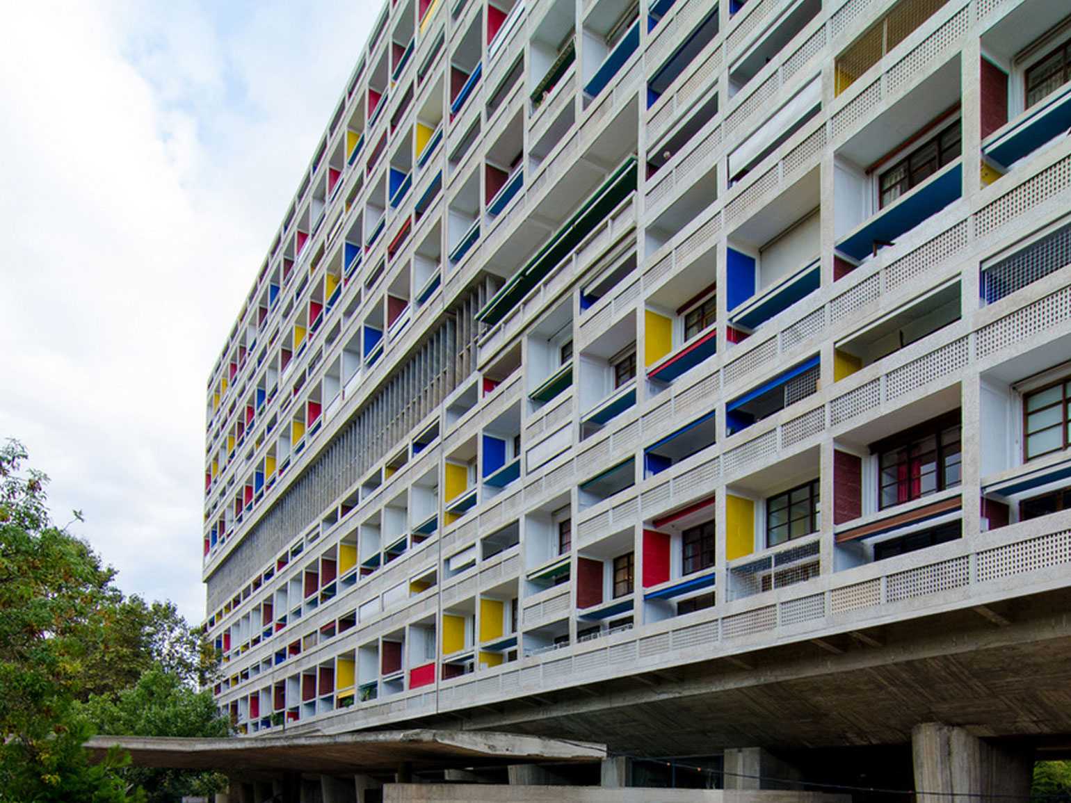 «Жилая единица» — многоквартирный жилой дом, многофункциональный «город в городе». Ле Корбюзье планировал, что из них будут состоять новые города после войны. В качестве материала был использован самый недорогой — железобетон.