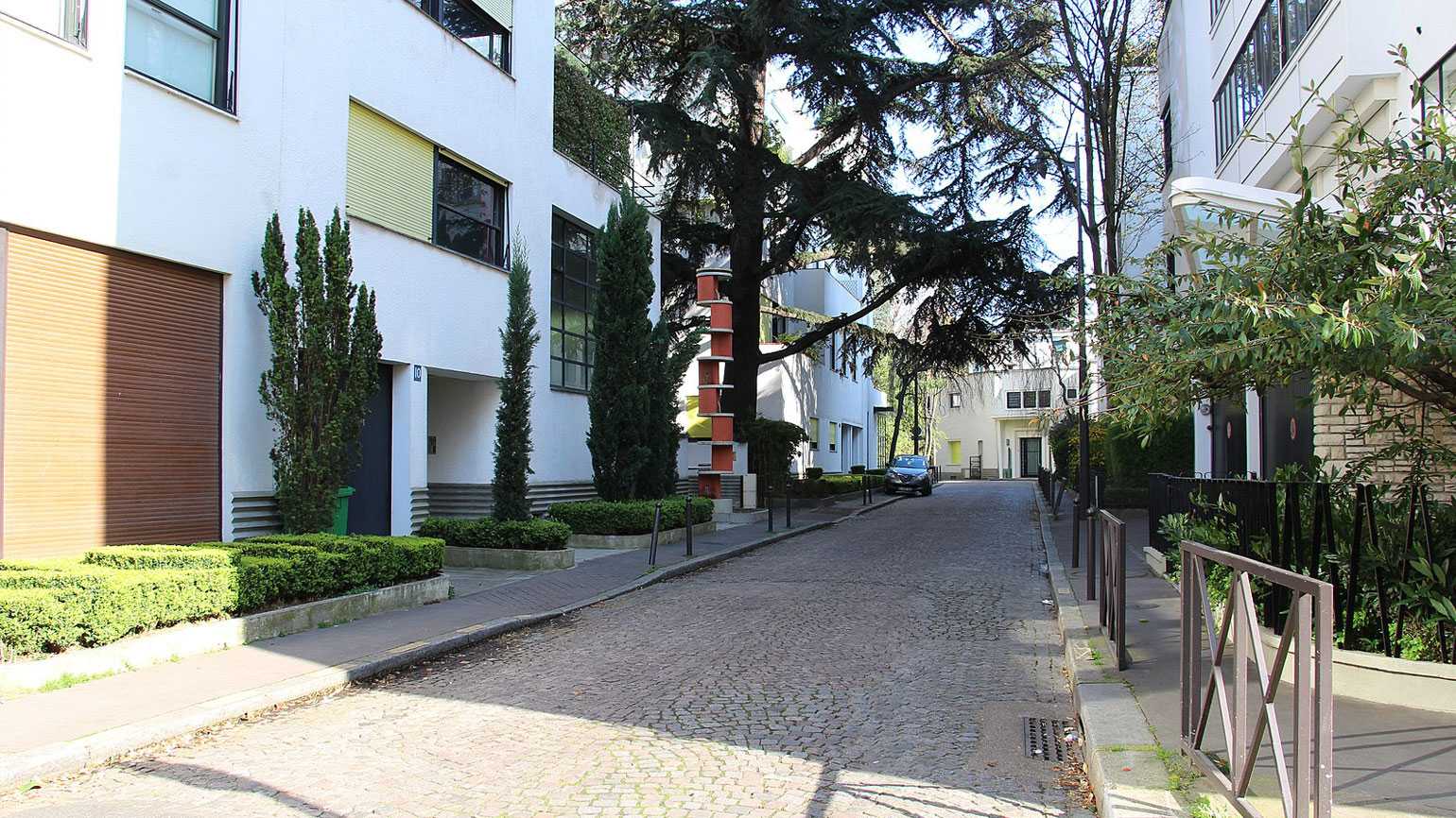 По замыслу Малле-Стивенса, вдоль проезжей части расположились тротуары с широкими клумбами-газонами. Они не отгорожены от домов, а естественно примыкают к ним. Кроме того, у домов были посажены деревья. Таким образом, все дома как будто располагаются в одном большом саду.