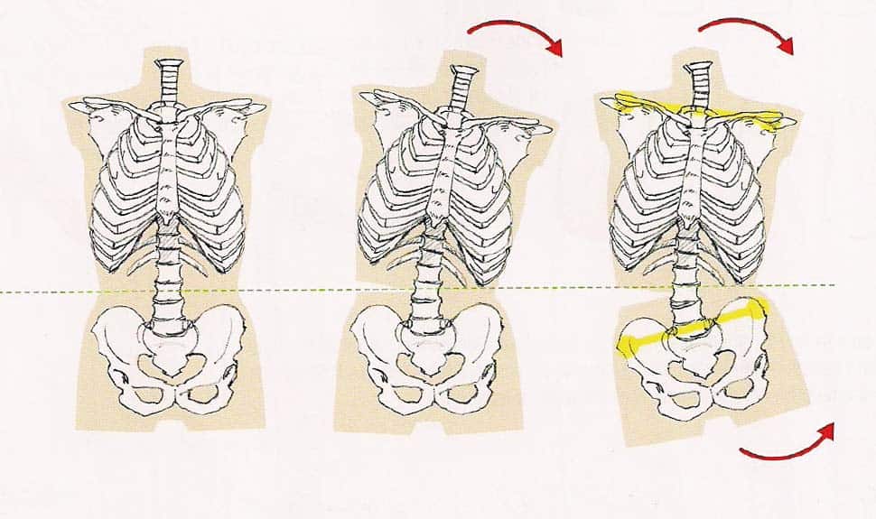 Вы можете менять позу, наклоняя или поворачивая кости. В вертикальном положении плечи наклоняются вместе с позвонками. Также таз наклоняется, когда вес тела перенесен на одну ногу. Основное правило различных поз: “Когда левое плечо опущено вниз, левое бедро поднято вверх”.