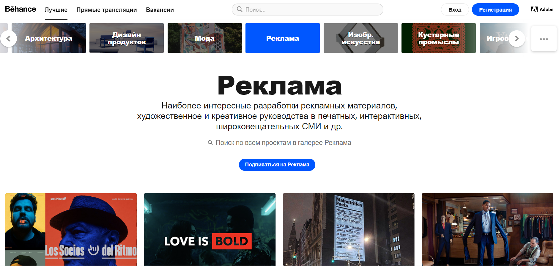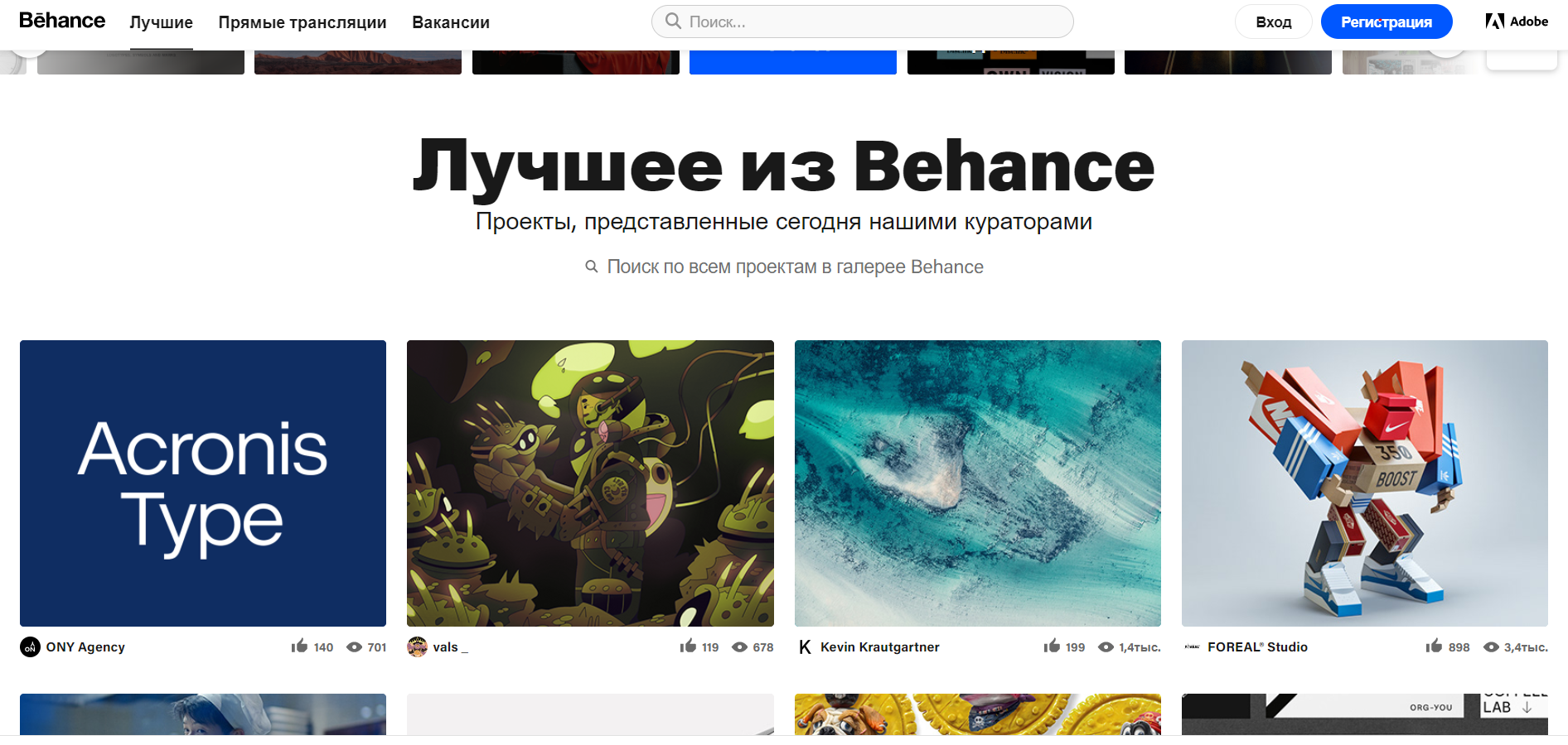 Также в Behance есть вкладка «Лучшее», где собираются лучшие проекты, отобранные кураторами площадки.