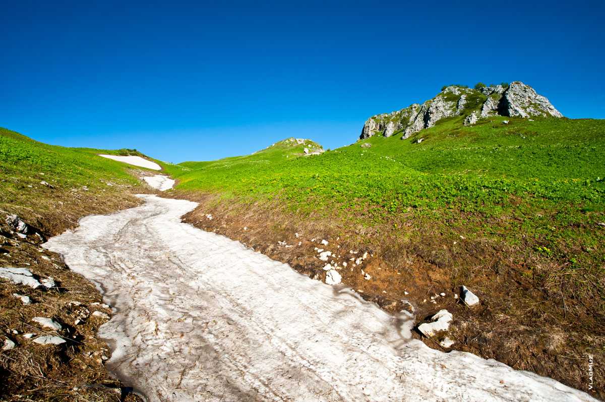 Среди лежащего снега на разрозненных островках пригревающего солнца такими ранними весенними первоцветами горной местности, конечно же, являются: