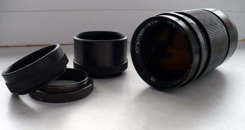 Объектив «Юпитер-37А» (фокусное расстояние — 135 мм, светосила — f/3,5) с удлинительными кольцами позволяет фокусироваться с малой дистанции