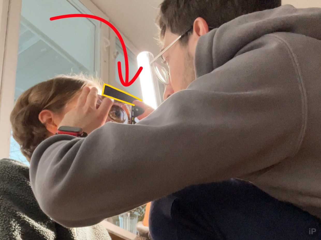Чем более яркими будут объекты, тем сильнее их видно. Мне со своим буквально искрящимся белым iPhone 13 Pro с голой серебристой сталью и белой спинкой было особенно сложно. Я закрыл его чёрным блокнотом.