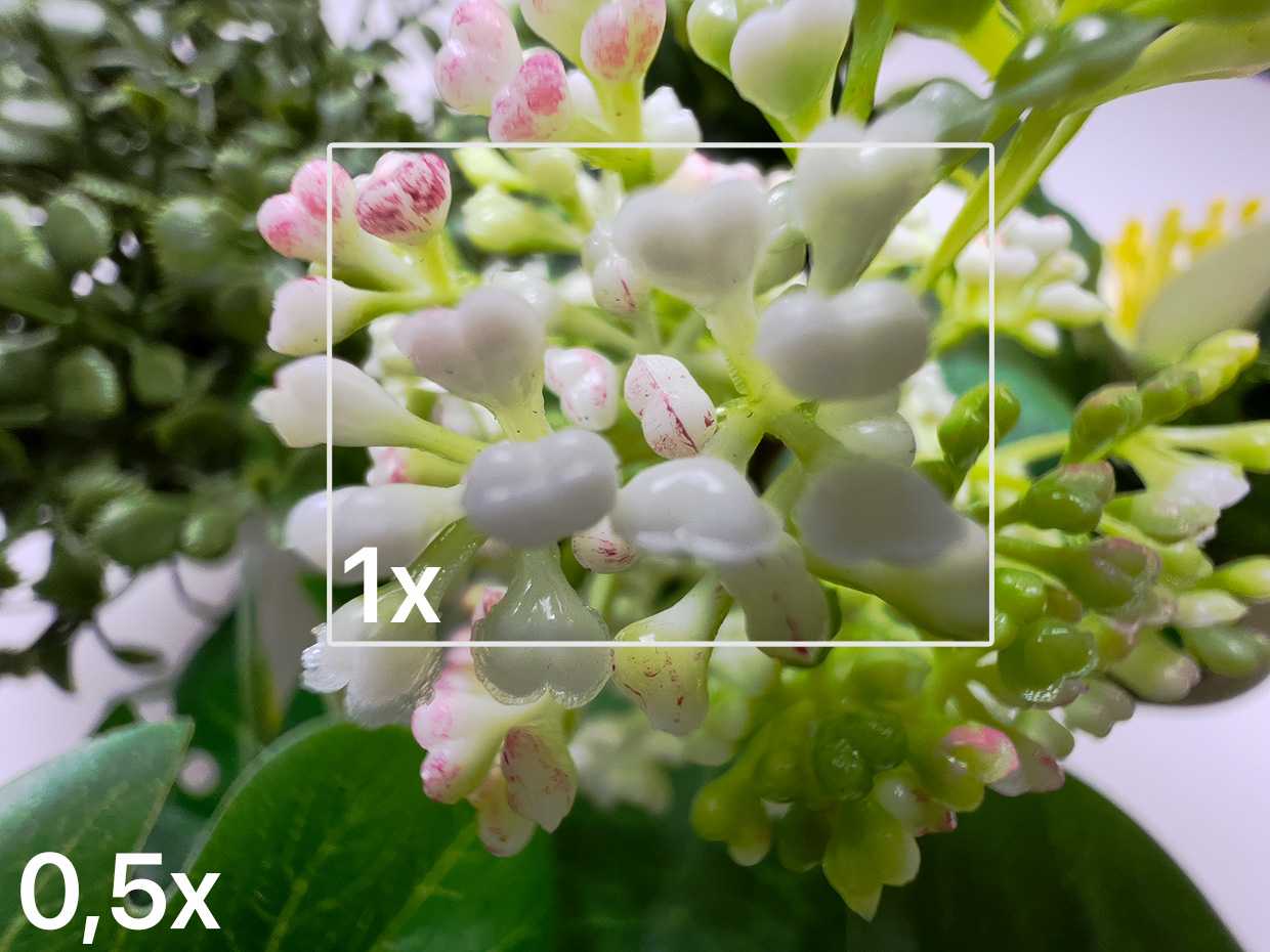 1x отображает ту часть кадра, которая будет в фокусе при переключении на миниатюрную съёмку