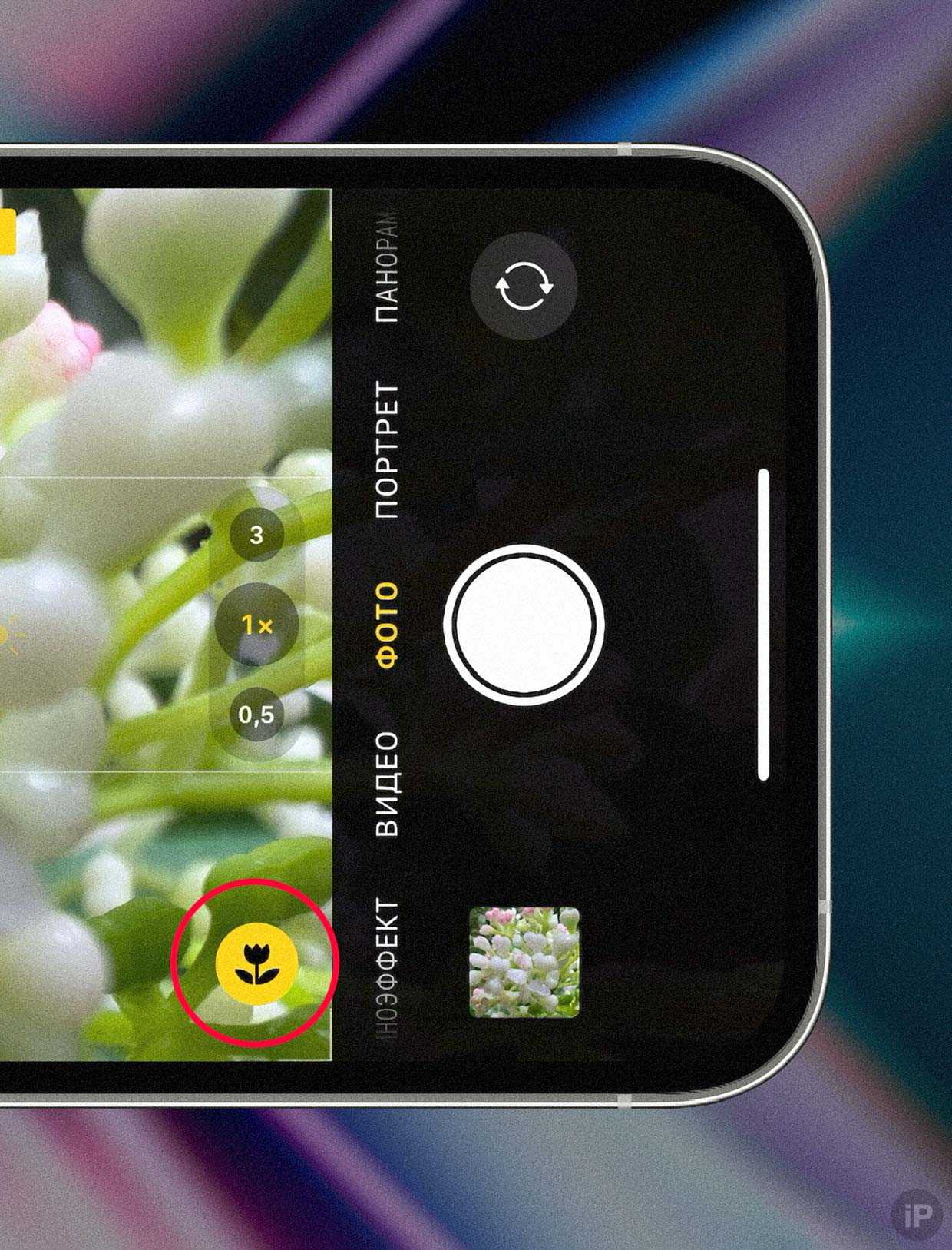 После открытия Камеры поднесите смартфон максимально близко к объекту, и программа автоматически перейдёт в режим Макро.