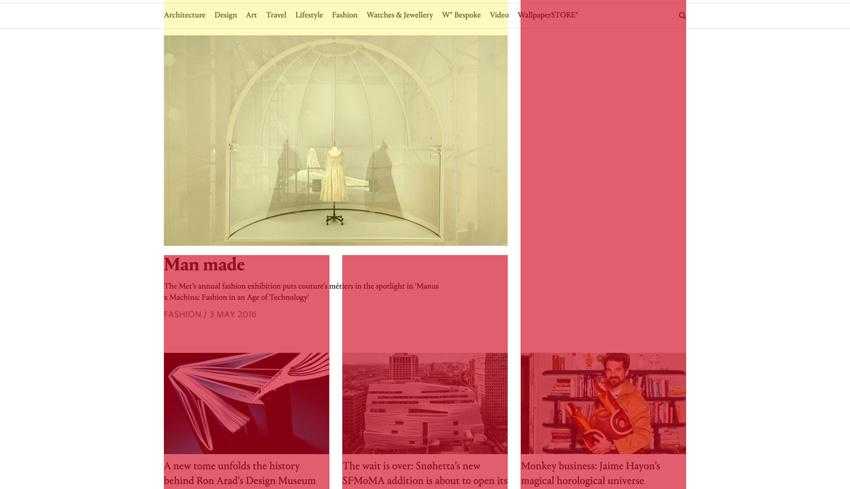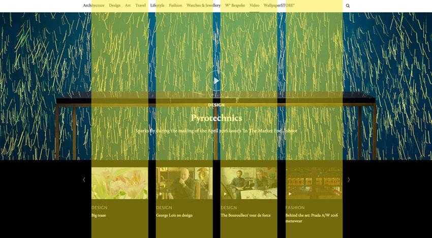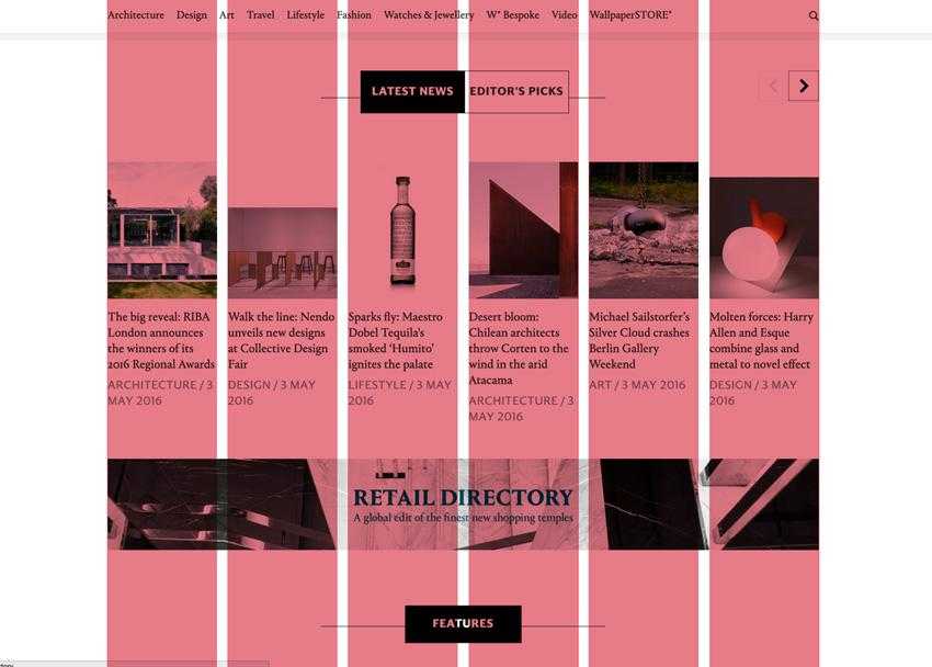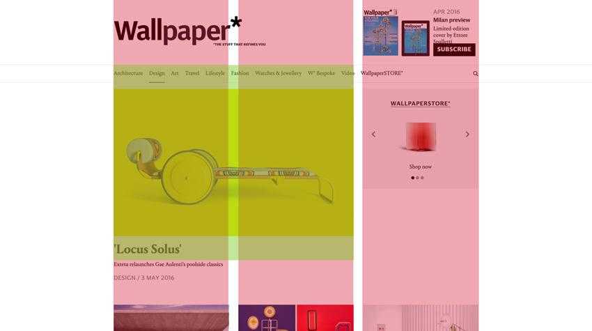 Выход за пределы сетки, чтобы создать акцент, может либо сильно улучшить ваш дизайн, выделив важные элементы, либо сделать его ужасным. Wallpaper сделали отличную работу, сломав четырехколоночную сетку, и подчеркнули видео, которое они хотят, чтобы вы посмотрели.