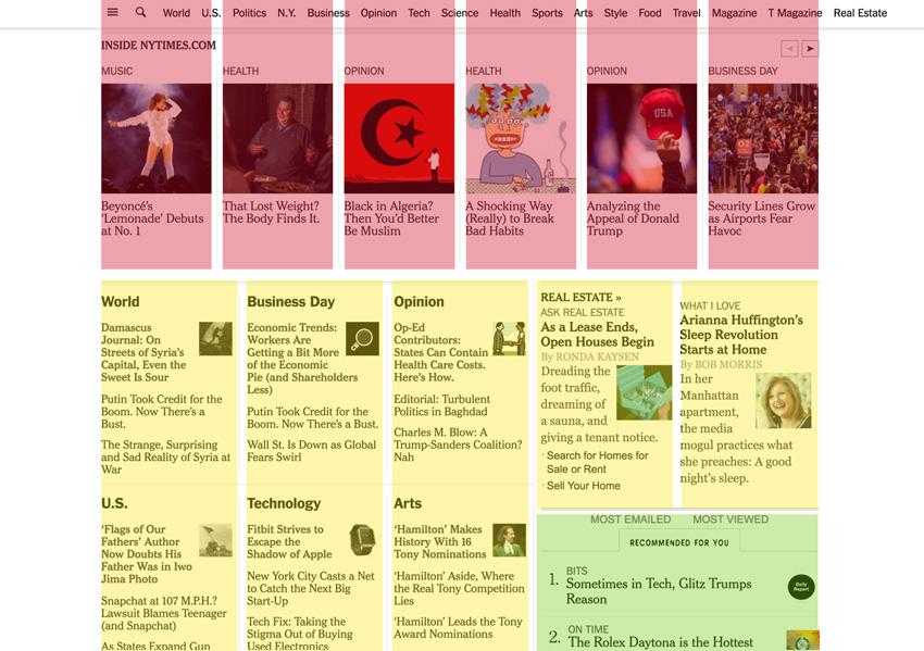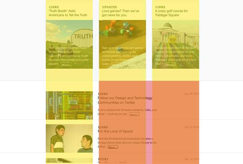 Если вы преуспели, ваша сетка поможет вам создать ментальную модель вашего сайта и отдельных его страниц. Это также подразумевает, что структура ваших страниц не должна полностью отличаться друг от друга — общий знаменатель, который регулирует вид каждой страницы должен быть частью вашего плана.