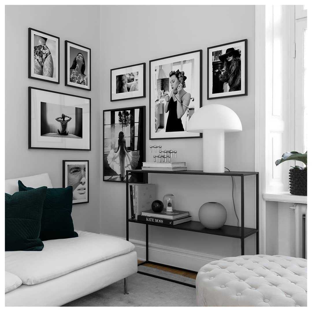 Постеры. Постер может стать отличной бюджетной альтернативой фотографии. Приобрести плакат с кадром из любимого черно-белого фильма или с портретом известной актрисы середины прошлого века вы можете не только в самых крупных и бюджетных онлайн-магазинах, но и в сувенирных лавочках. Украсьте постер красивой лаконичной рамой, и она не будет уступать настоящей фотографии.