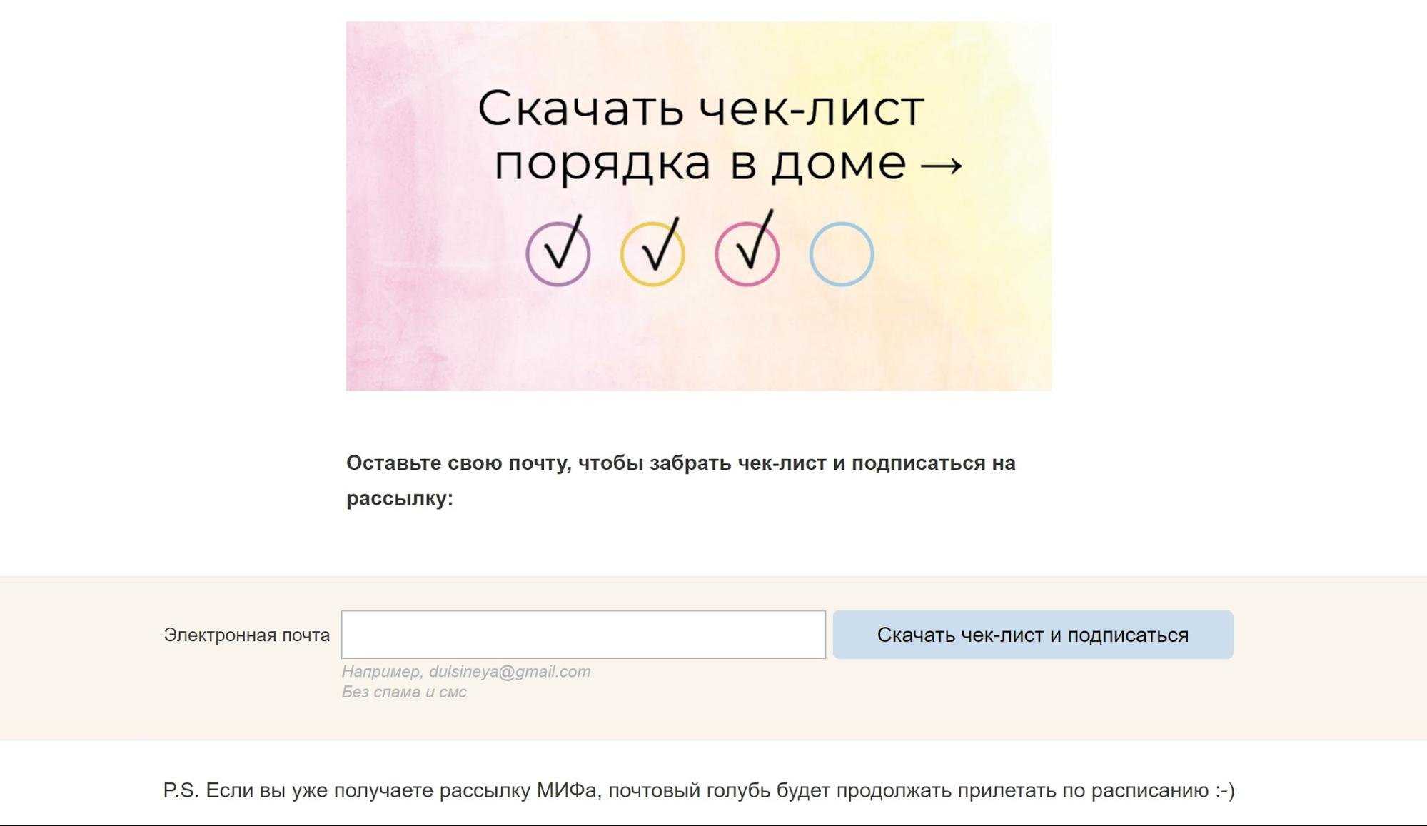 Чек-лист в качестве лид-магнита на сайте издательства МИФ. Источник