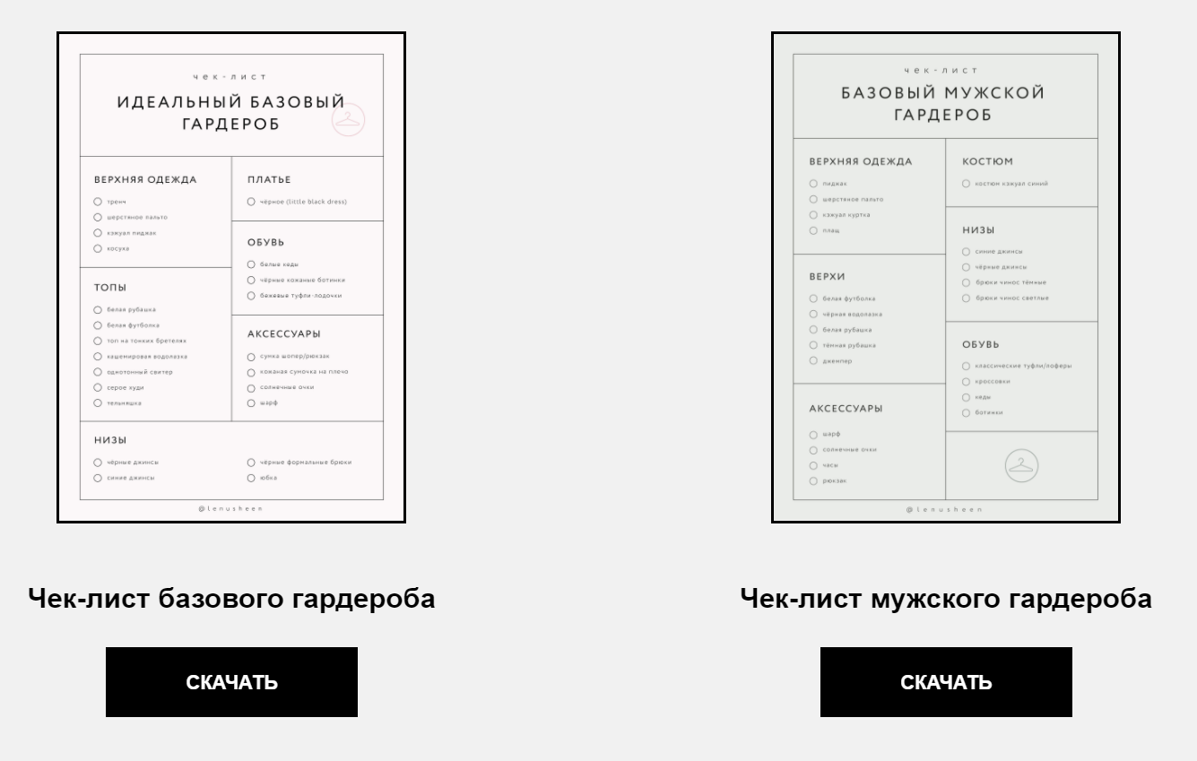 Примеры бесплатных чек-листов от фешн-блогера. Источник