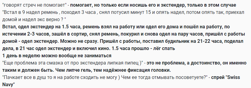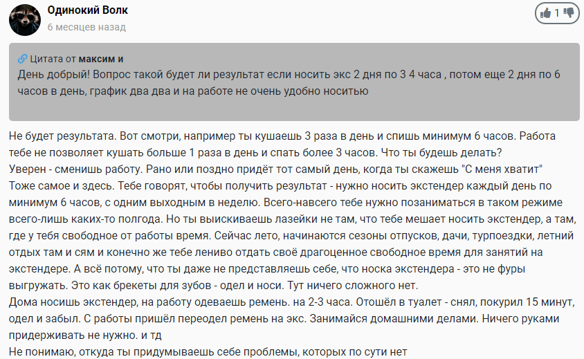 Рекомендации по графику ношения прибора от участника форума https://forum.andromedic.ru/ru/communities/1/topics/216-otzyivyi-i-rezultatyi-po-ekstenderam-penimaster-pro?page=29: