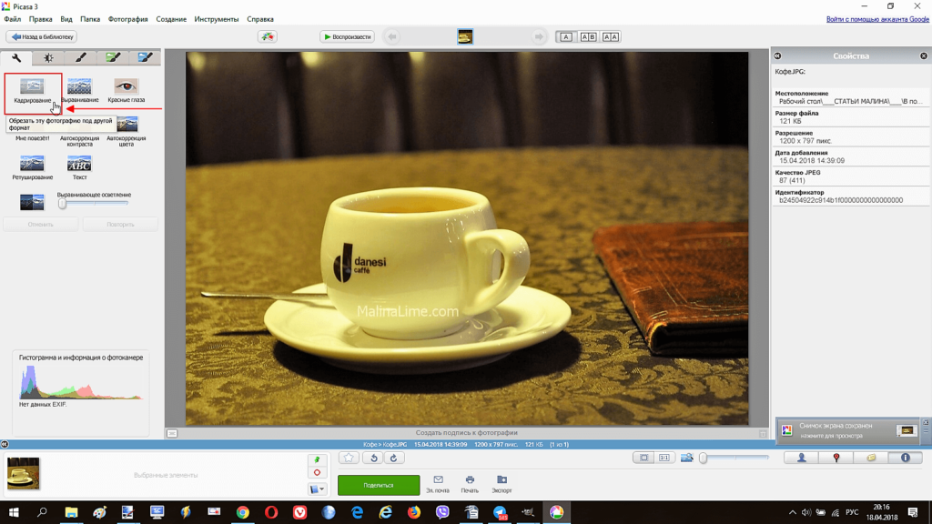- Исходный файл остается в том виде, в каком он и был до кадрирования. Picasa с применяет изменения к копии.