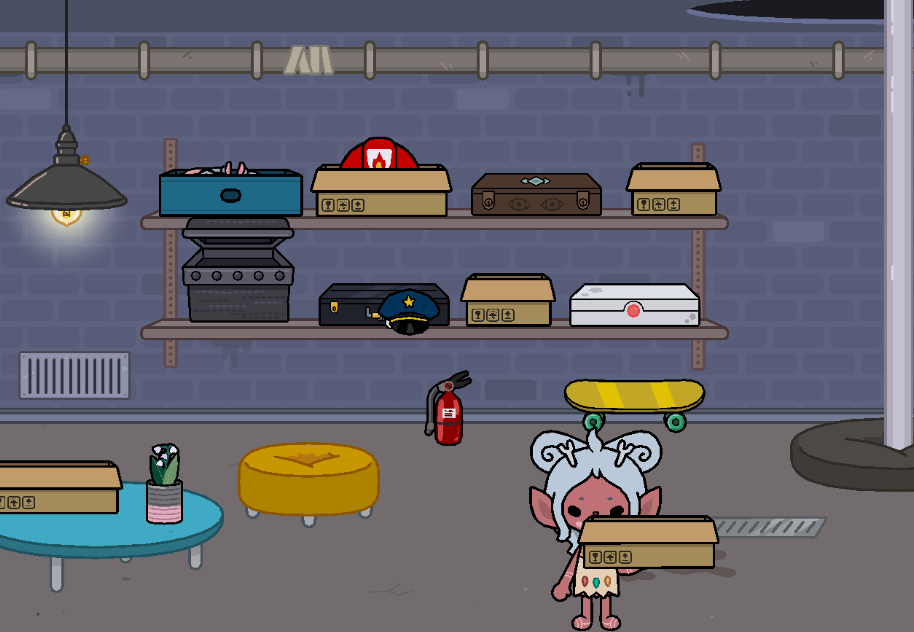 Для начала нам нужно найти предмет, куда мы сможем складывать ингредиенты для создания крампетов. Это может быть картонная коробка, чемодан, сундук и т.д. Их можно найти в гараже. Давайте зайдем в него.