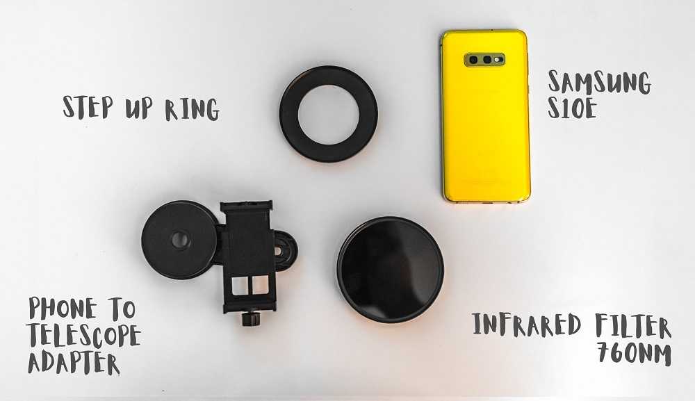 Samsung S10E, переходное кольцо, переходник с телефона на выдвижную стойку, инфракрасный фильтр 760 нм.
