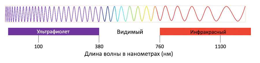 Человеческий глаз способен воспринимать свет (электромагнитное излучение), имеющий длину волны в диапазоне от 350 нанометров (фиолетовый) до 760 нанометров (красный). Всё, что мы видим находится в пределах этого крошечного спектра. Это означает, что вокруг нас существует целый невидимый мир!