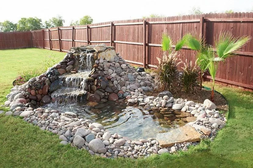 - Водоем средней глубины. Глубина такого водопада составляет 1 метр. Его дно в таком случае будет хорошо видным. К тому же чистка подобного водоема в процессе эксплуатации будет довольно простой. В воду в таком случае можно запустить рыбок различного вида.