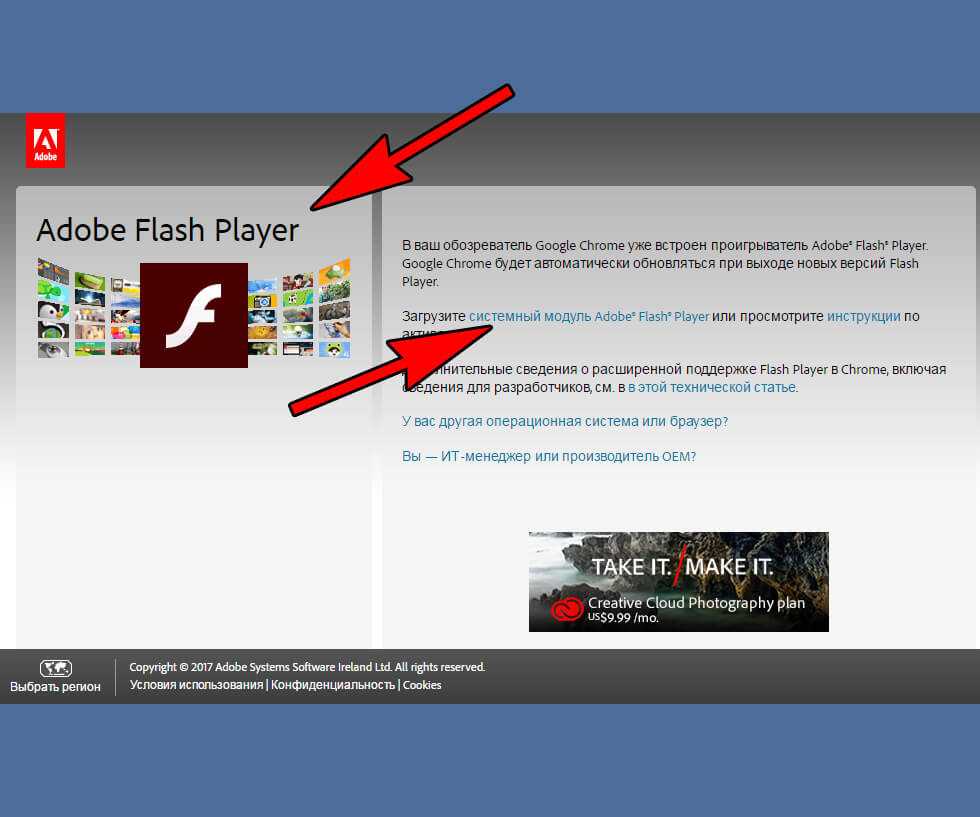- Осуществить обновление Flash Player, скачав новую версию с официального ресурса программы.