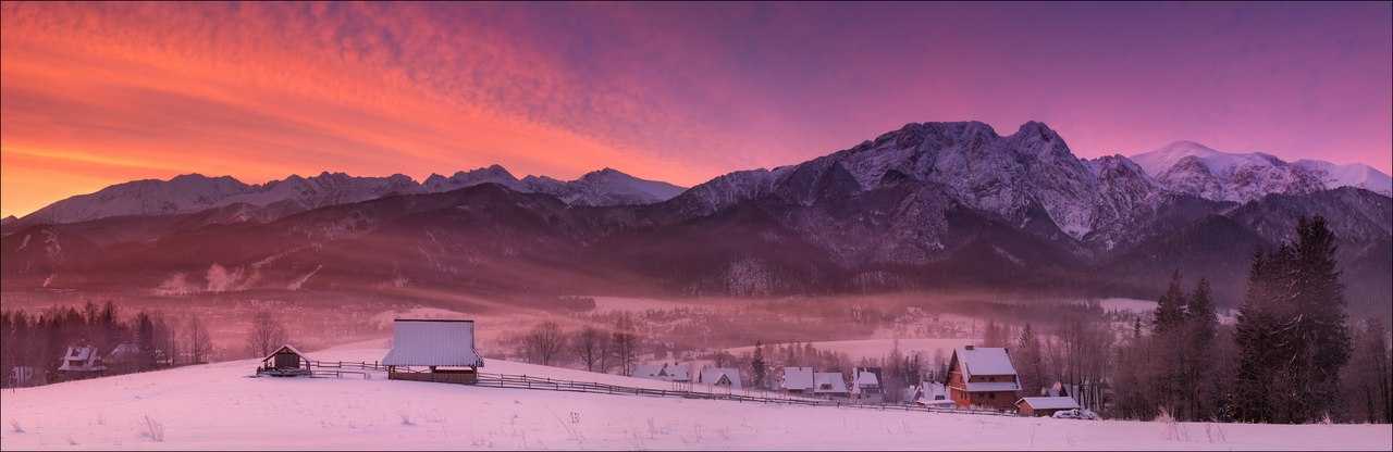 10. Зимний пейзаж на восходе или на закате: