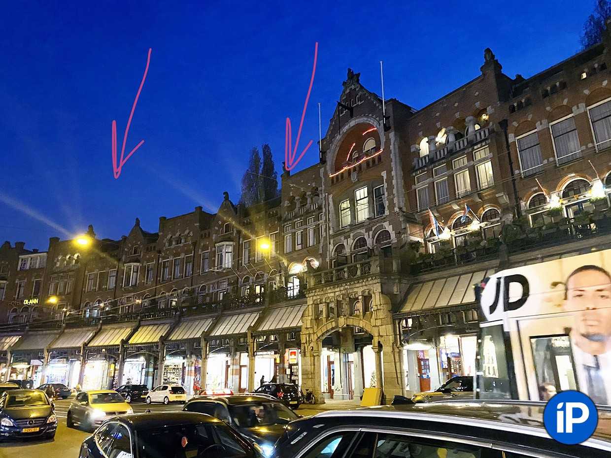 ▹ Направьте iPhone так, чтобы блики были меньше заметны. Например, «положите» их на какой-нибудь другой яркий объект. Увы, это не всегда возможно, особенно ночью.