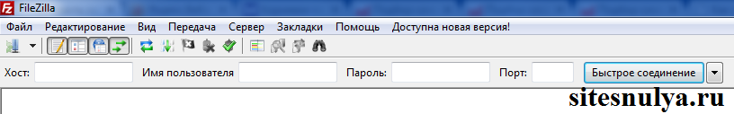 Теперь вам необходимо ввести данные для доступа к серверу хостинга: «Хост», «Имя пользователя», «Пароль» и «Порт» (его не вводите). Всю эту информацию вам должны предоставлять сразу после оплаты услуг хостера или по вашему запросу в техподдержку.