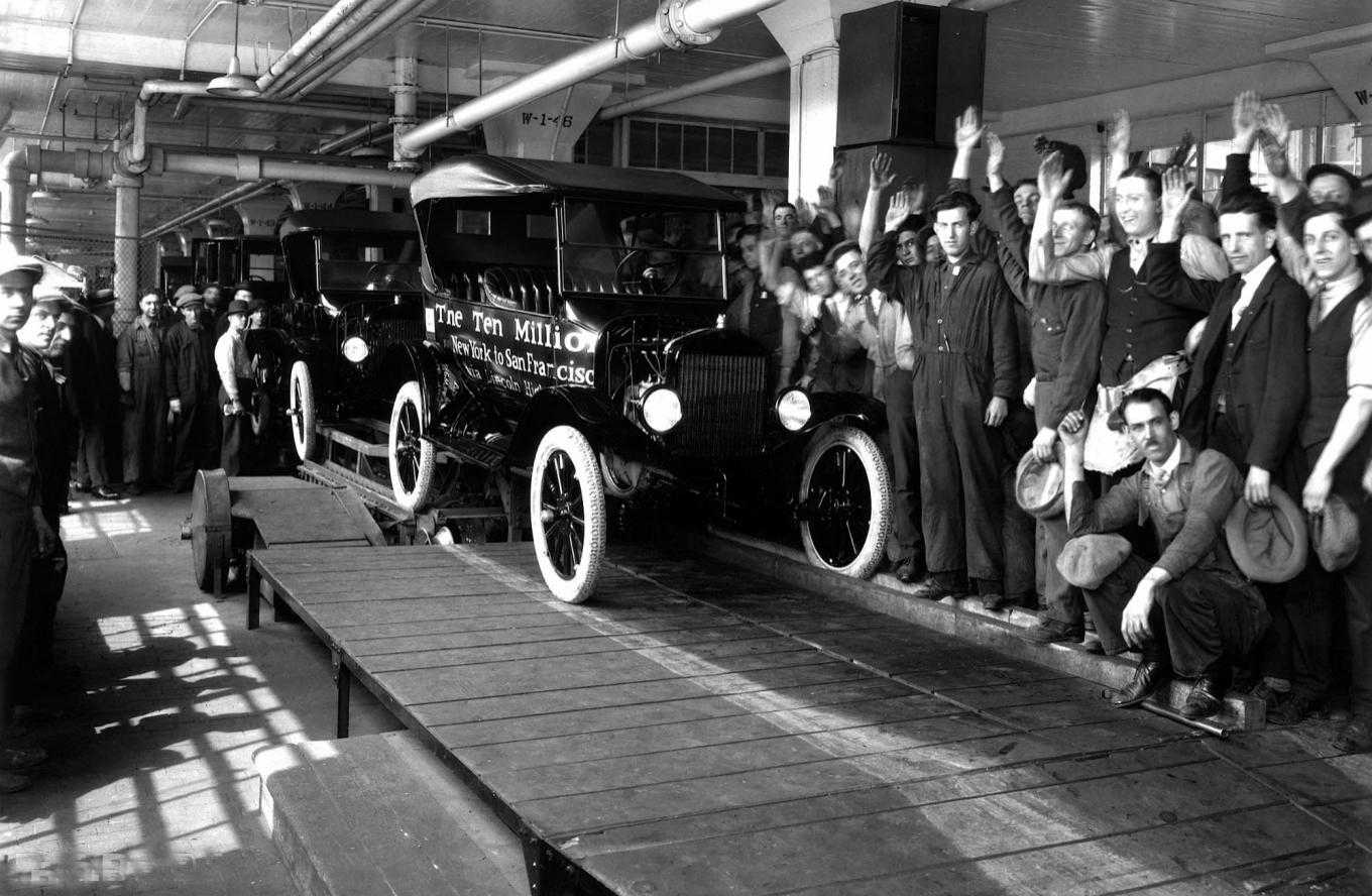 Не только конвейерБезусловно, потоковая сборка автомобиля существенно помогла конвейеру попасть в широкие массы, но кроме этого Генри Форд знаменит тем, что начал платить рабочим по 5 долларов в день — это было значительно больше, чем в среднем по отрасли. Он же сократил рабочий день до 8 часов, а еще предоставил своим рабочим 2 выходных дня. В итоге, один узел доработанный гениальным специалистом, немного уважения к наёмным рабочим, и Генри Форд стал человеком, который навсегда вошел в историю.