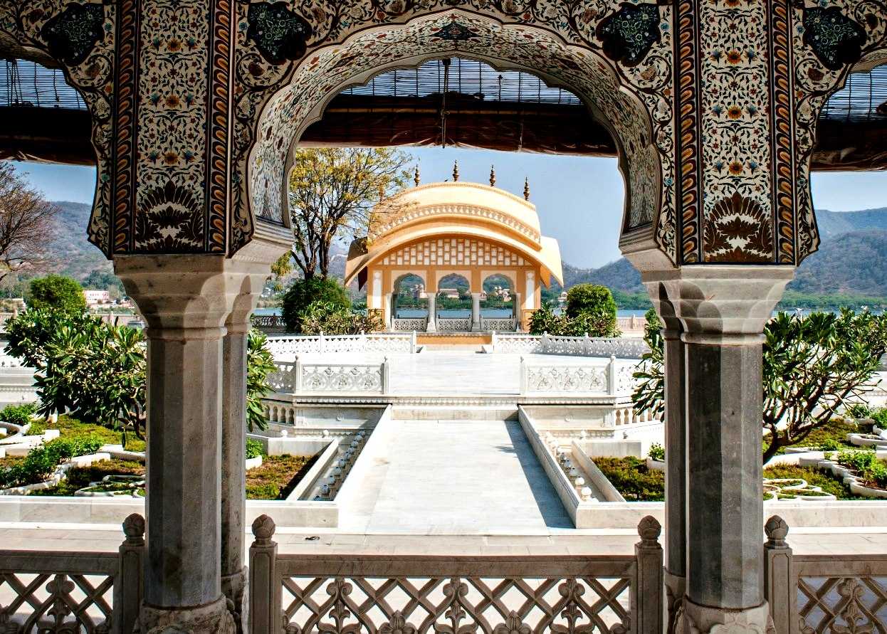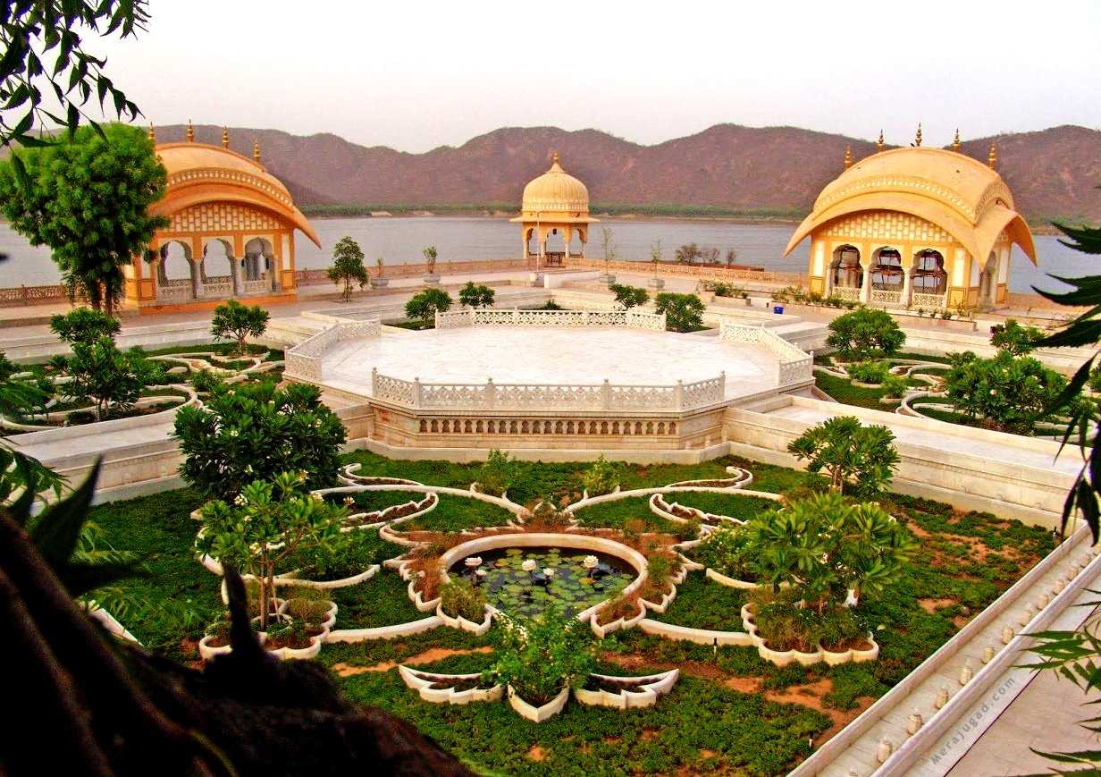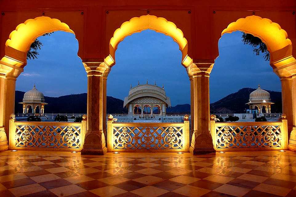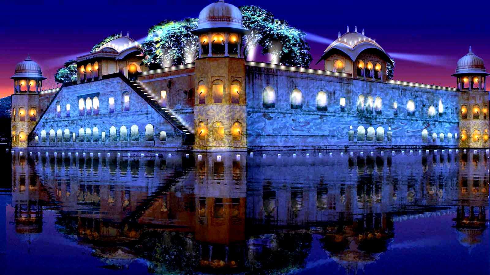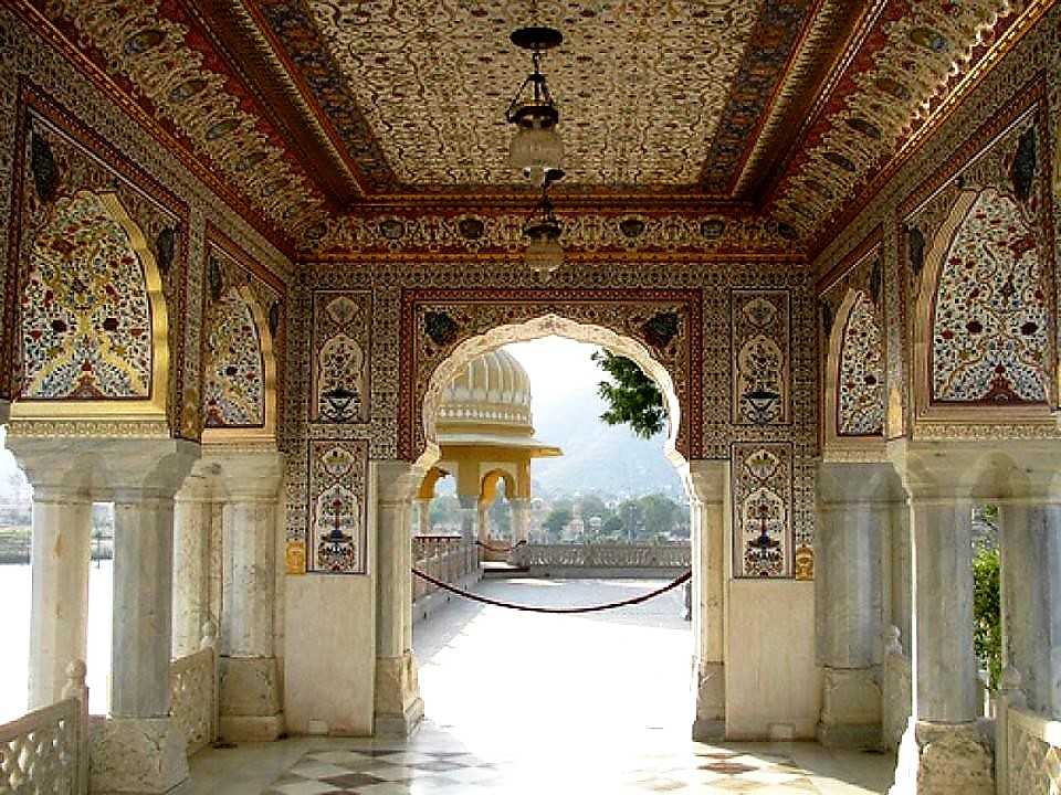 Дворец Джал-Махал (Дворец на воде) стоит прямо посреди небольшого озера Ман Сагар в нескольких километрах от города Джайпура. Дворец был возведен в индо-мусульманском стиле Мадхо для правителя Раджастана Сингха I в середине XVIII в. и служил в качестве охотничьего загородного дворца.