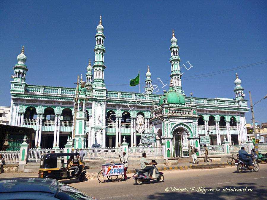В Индии в одном месте можно встретить наличие нескольких религий и главное они не мешают существовать друг другу и их почитателям. Вот на этой улице можно увидеть и мечеть и вдалеке Собор Св. Филомены.