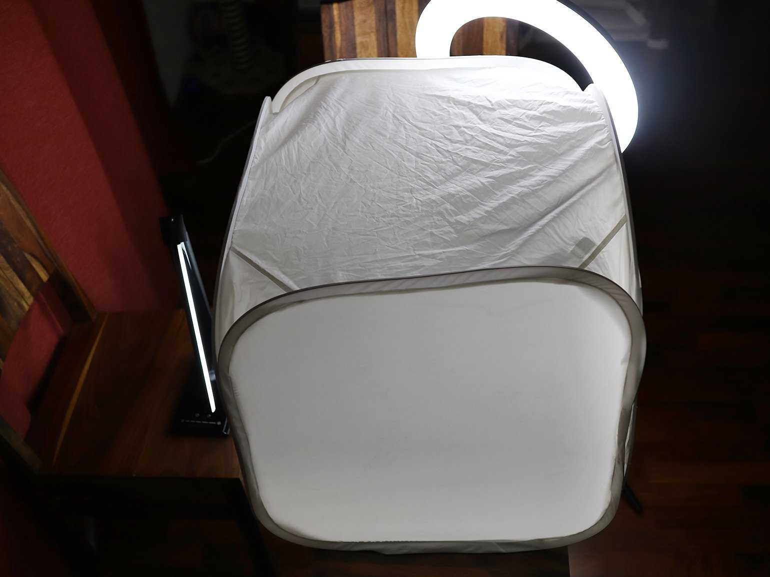 Заполняющий источник вам не требуется — его заменят стенки фотобокса. Они будут отражать и рассеивать основной свет, делая его мягким и равномерным.