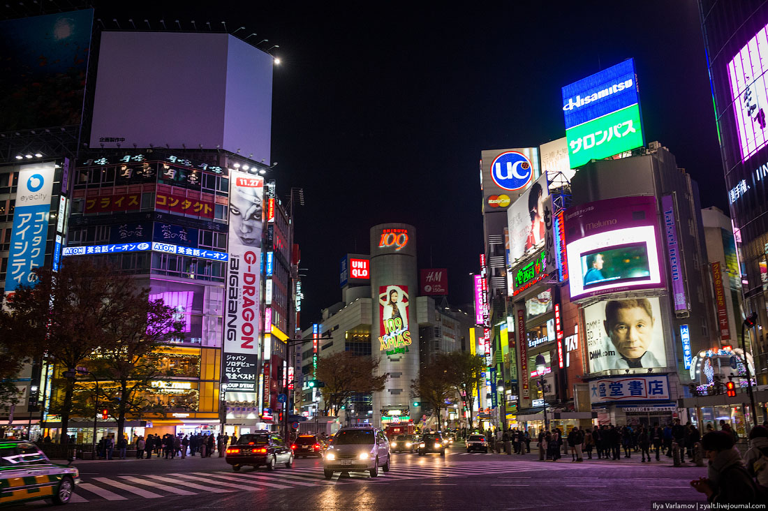 Неоновая реклама на фасадах зданий, Токио, Япония. Источник