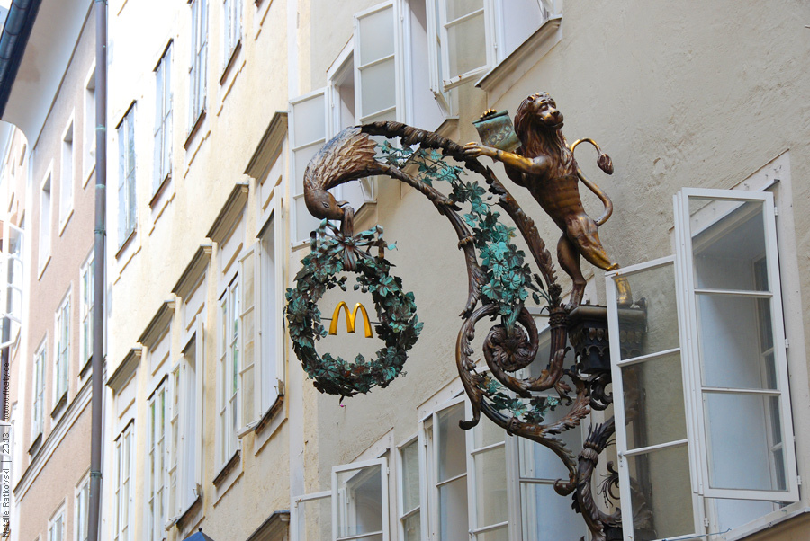Вывеска «Макдоналдс» на исторической улице Зальцбурга, Германия. Источник