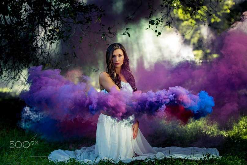 Но принести цветной дым мало, нужно знать, как с ним работать, как поставить жениха и невесту. Как сделать так чтобы главным на фото был не дым, а люди. Дым-это дополнение классное, но все же это не самое главное. Самое главное на фото-это люди. А дым лишь приукрашивает картинку. С дымом получаются завораживающие картинки. Они какие-то сказочные, интересные.