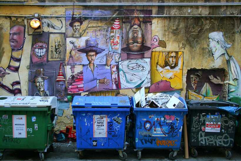 Швейцарский скульптор Жан Тэнгли в 1960 году представил «саморазрушающуюся» композицию «Homage to New York». Конструкция из железа и металла постепенно превращалась в груду мусора на глазах у посетителей. Они могли не просто наблюдать, но и чувствовать запах и слышать процесс разрушения.