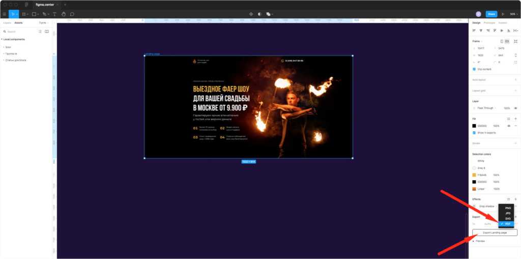 Важное примечание: в этом случае ничего не нужно выделять. Экспортируются все созданные вами ранее фреймы в вашем из вашего проекта