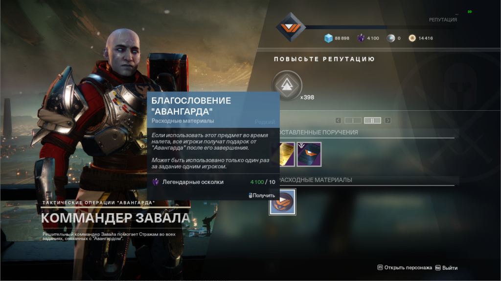 Бустер авангарда, купленный у Завалы, даст вам большее количество Жетонов Авангарда за налет, в котором вы его используете.