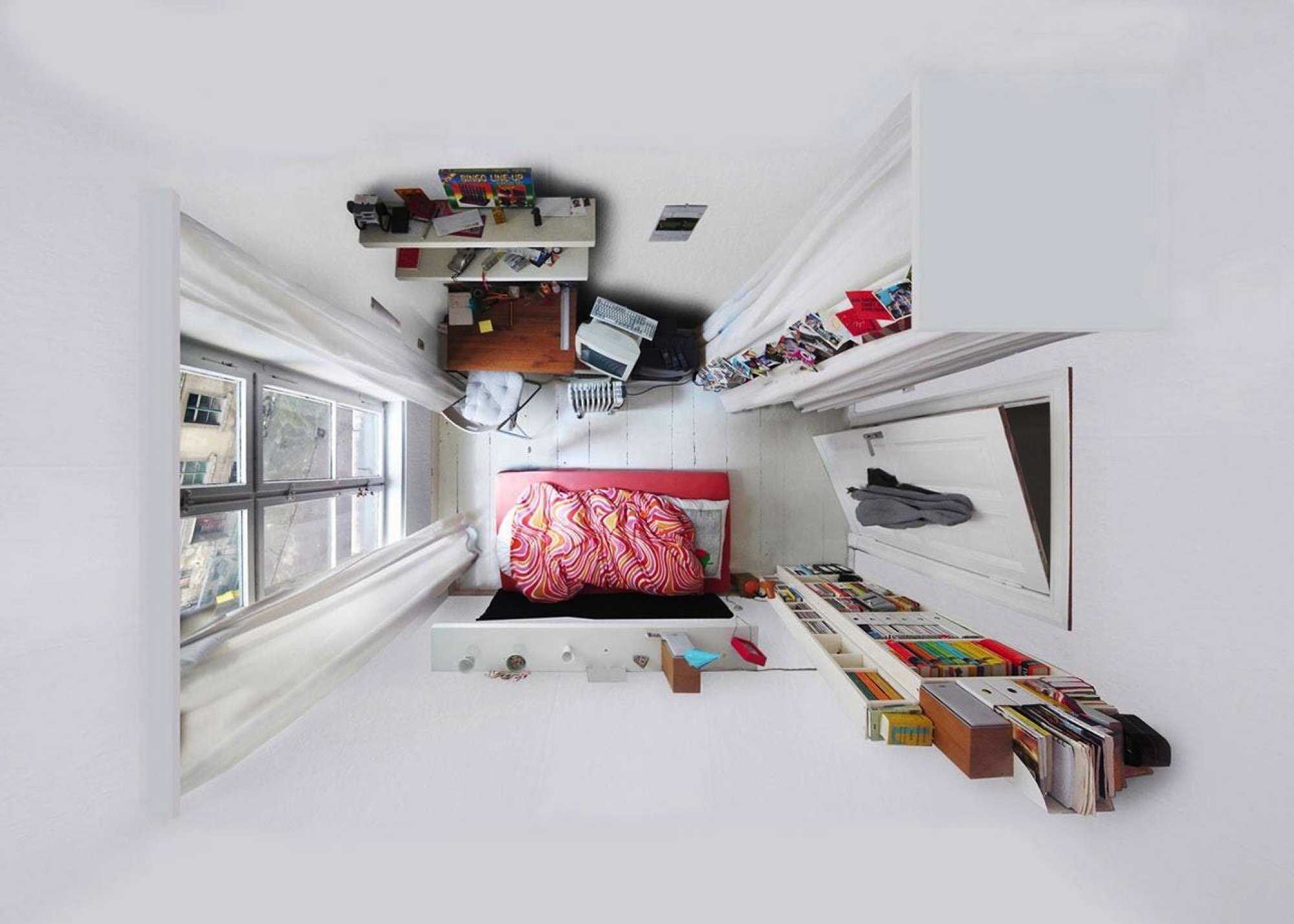 Ракурс решает все. Избегайте съемки из угла в угол по диагонали помещения. Выбирайте ракурс, при котором искажения размеров объектов будут минимальными. Помните эффект оптических иллюзий? Например, все эти двери на самом деле одного размера: